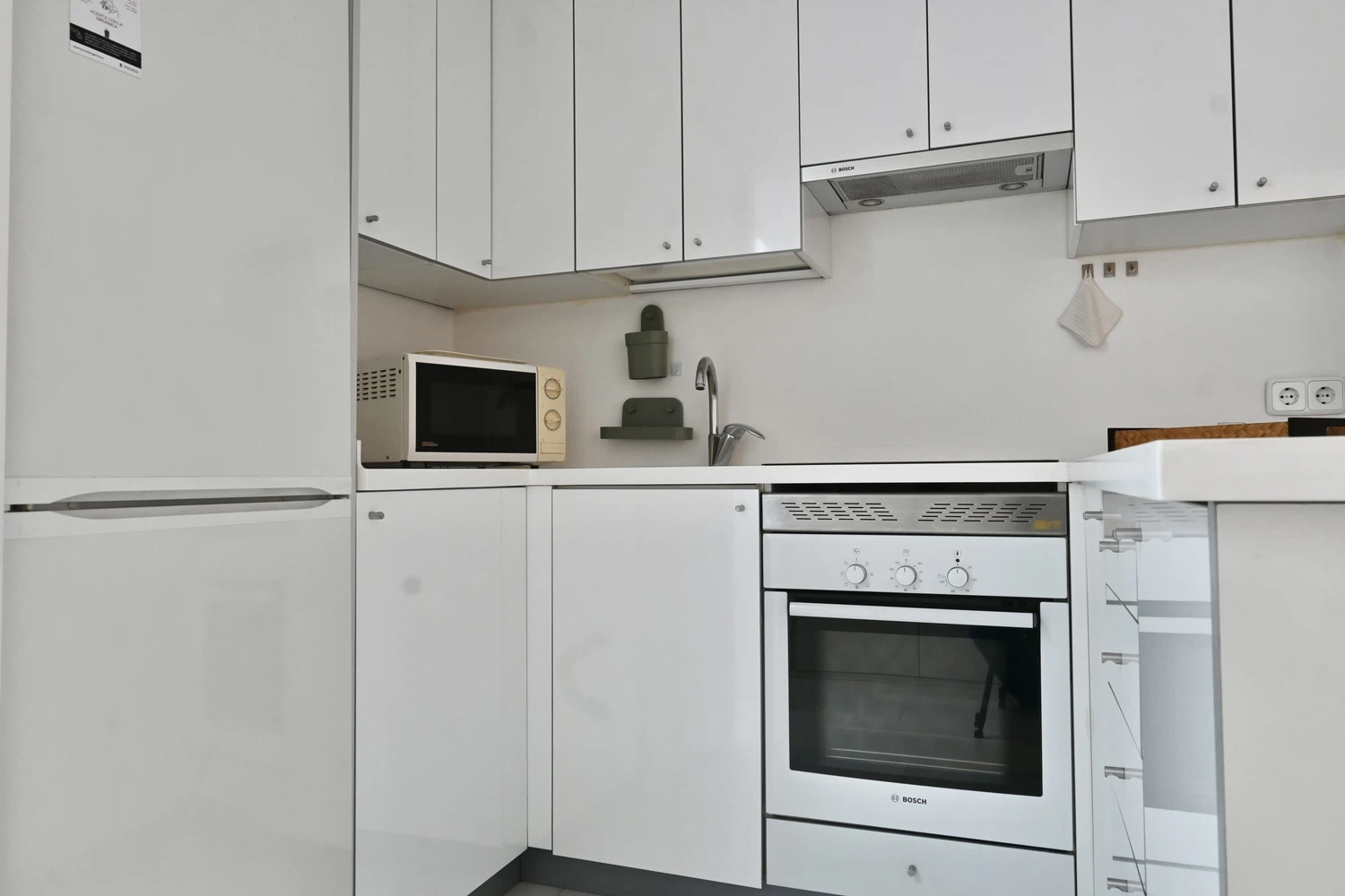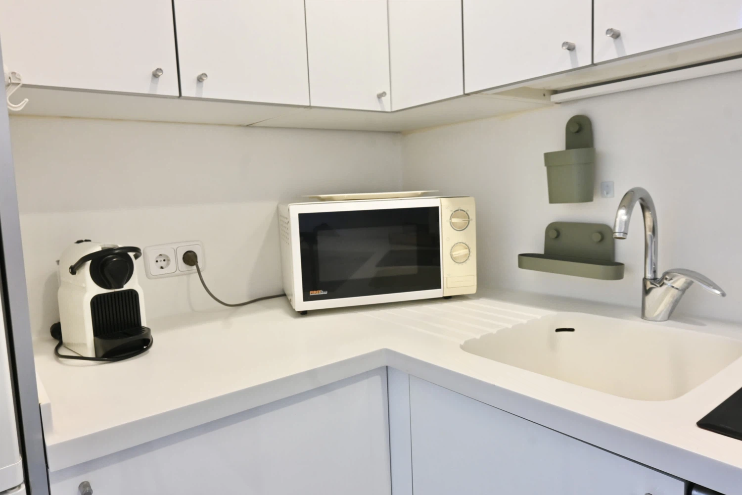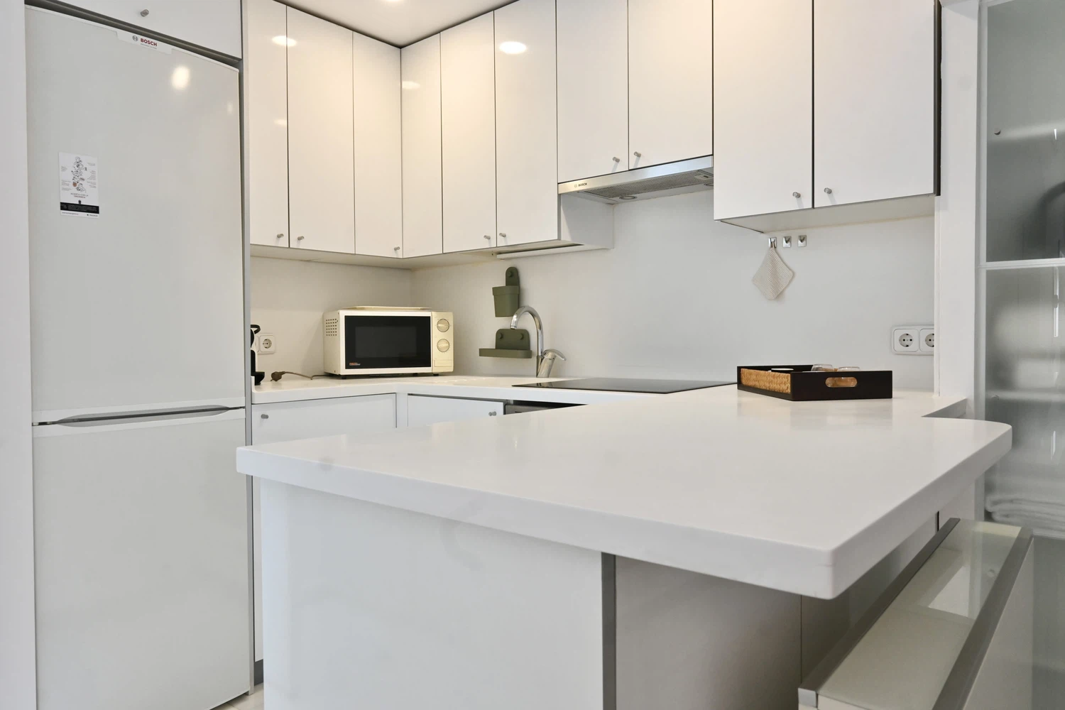 Cocina Equipada: La cocina está completamente equipada con electrodomésticos y armarios que ofrecen espacio suficiente para almacenar utensilios y alimentos. La encimera proporciona un área generosa para la preparación de comidas.