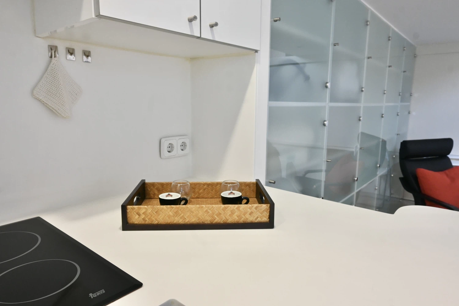 Pequeño Salón: La sala de estar es compacta pero acogedora, con un sofá cama doble que puede utilizarse para alojar a visitantes adicionales. Una mesa de comedor plegable con cuatro sillas permite adaptar el espacio según las necesidades,