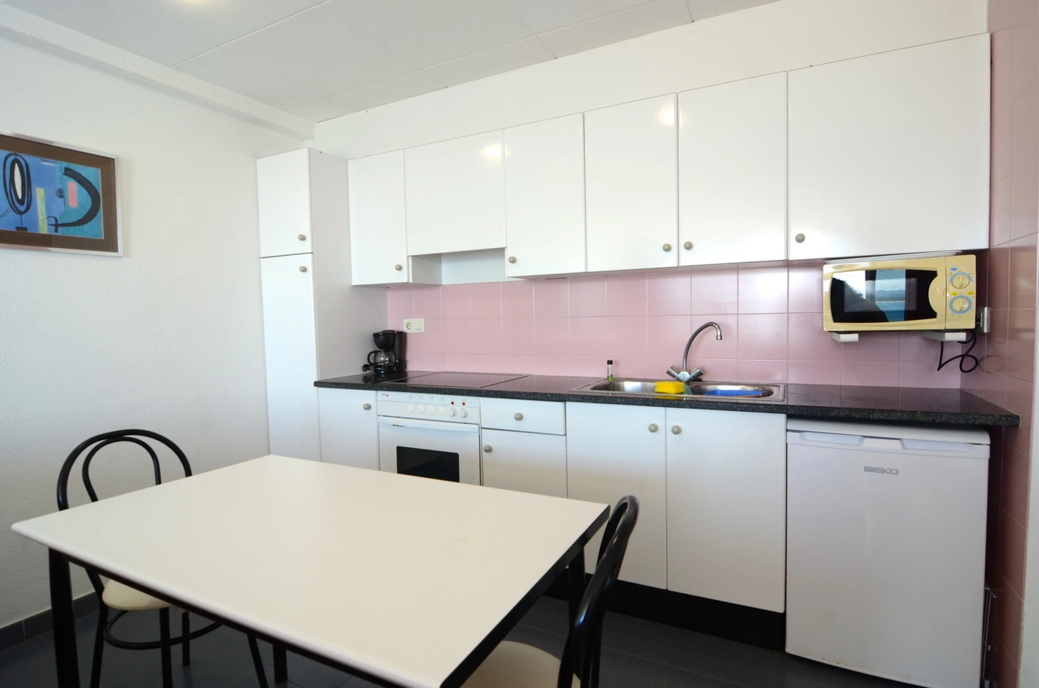 En la azotea del edificio hay una piscina comunitaria y piscina infantil con las mejores vistas de la Costa Brava. Las sábanas están incluidas en el precio del alquiler. Si quieres, puedes añadir también las toallas al hacer la reserva a un precio de 5€ por persona. Hay escaleras antes del acceso al edificio.