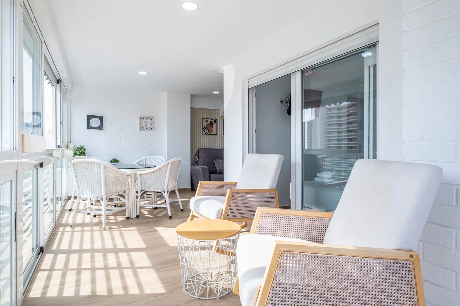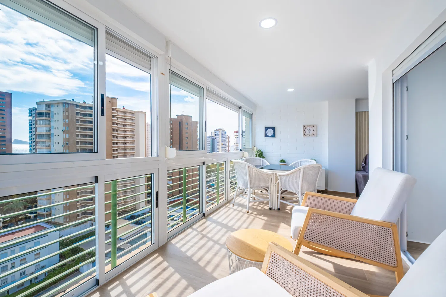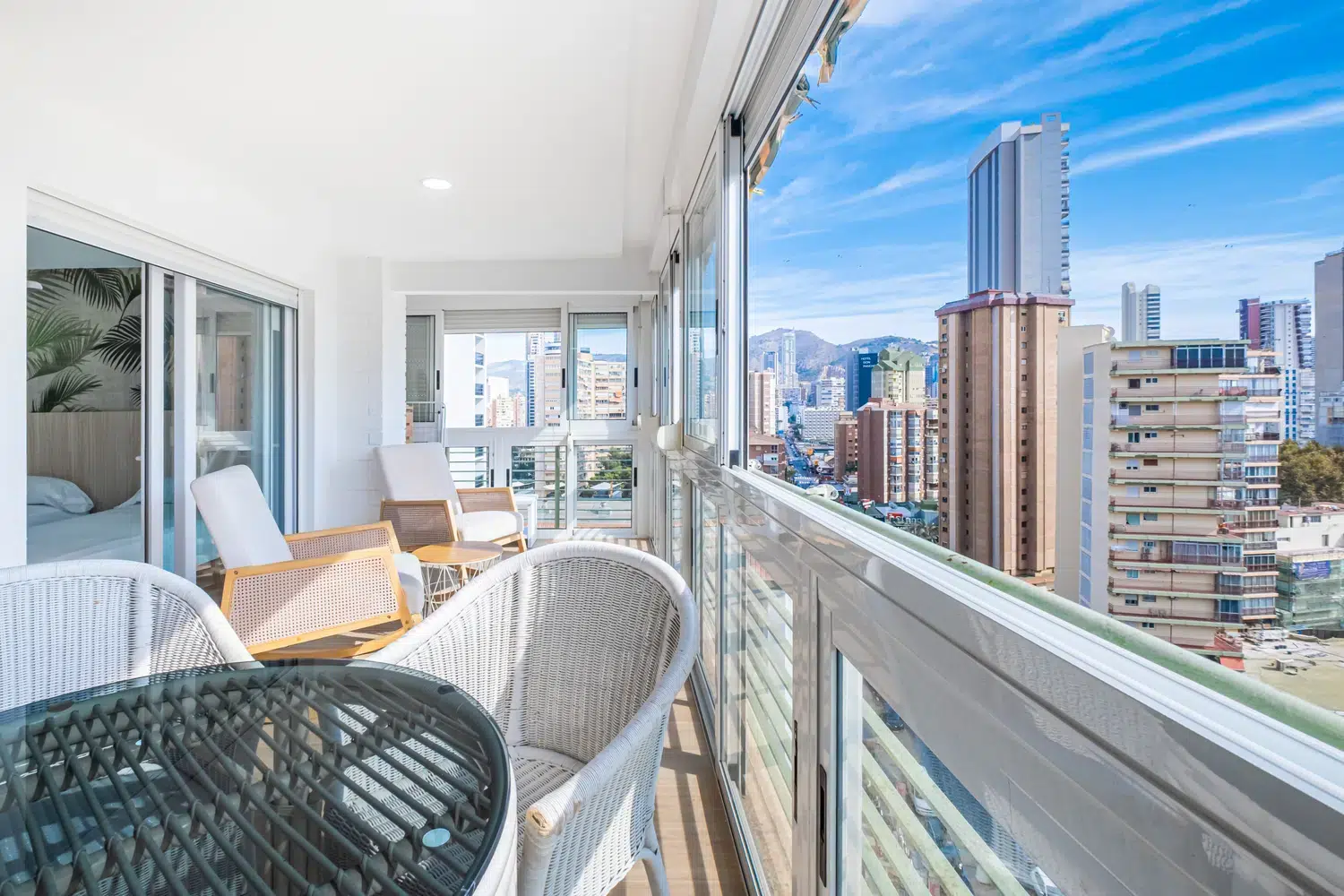 Alojamiento de 65 m² acogedor y muy luminoso, 15 m² de terraza acristalada con vistas al mar y a la ciudad.