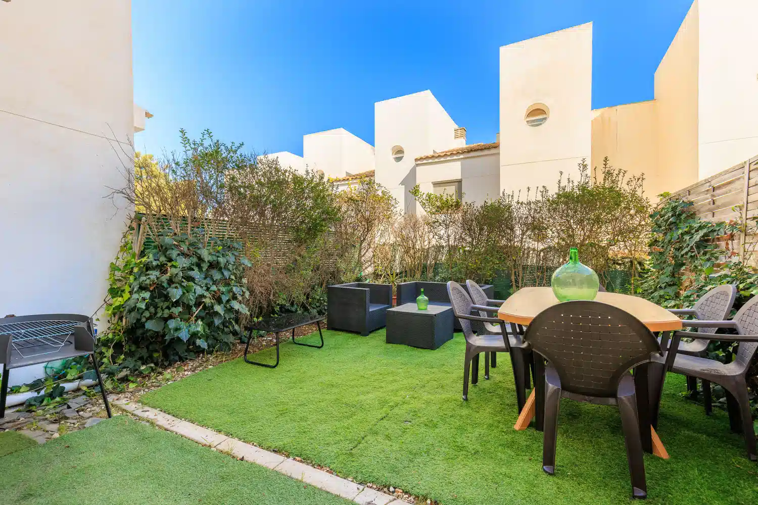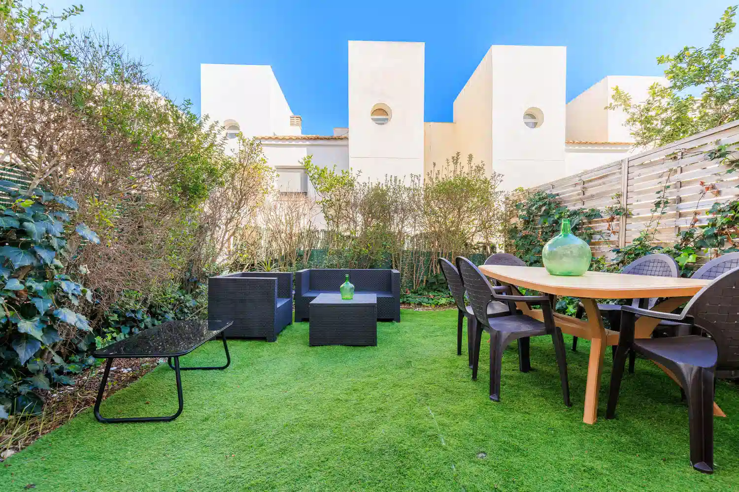 Amplia terraza con mobiliario exterior, ideal para compartir comidas al aire libre.