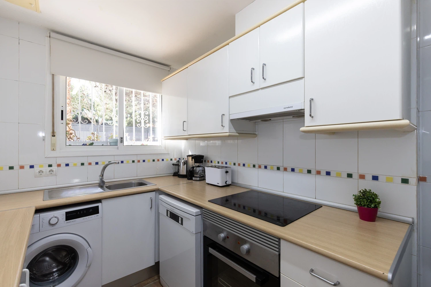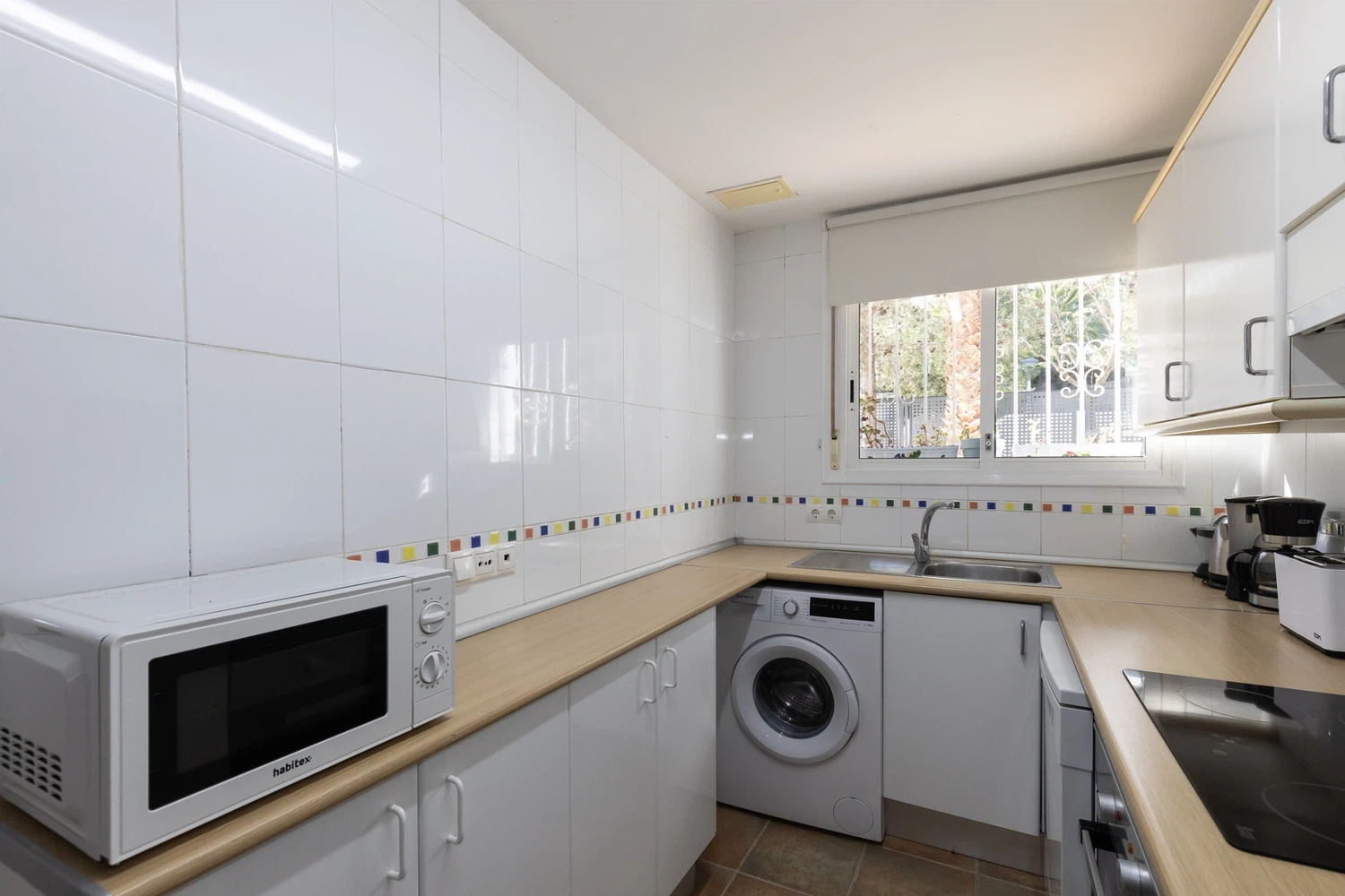 Cocina independiente totalmente equipada con los electrodomésticos y utensilios necesarios para una estancia cómoda.