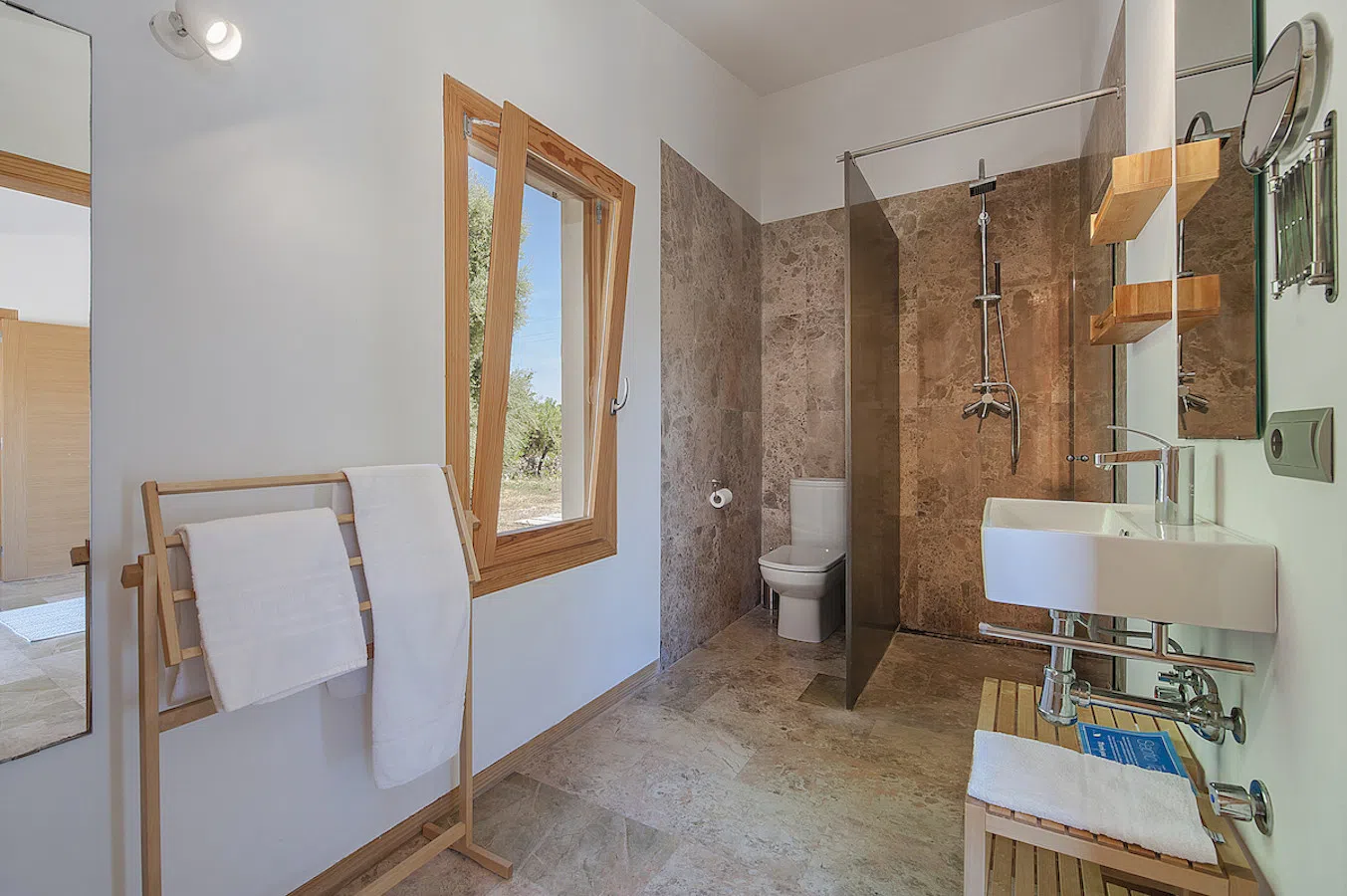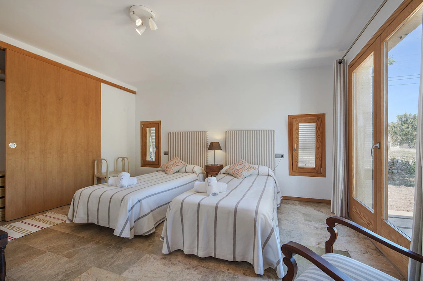 La villa, construida en una sola planta, cuenta con 3 habitaciones, todas equipadas con aire acondicionado. Dos de ellas son habitaciones dobles, y la tercera tiene dos camas individuales. Todas las habitaciones tienen acceso directo a la piscina privada de 9x3 metros y a la espaciosa terraza, ideal para disfrutar de momentos de relajación al aire libre. La propiedad también dispone de dos baños, uno de ellos en suite para mayor comodidad.