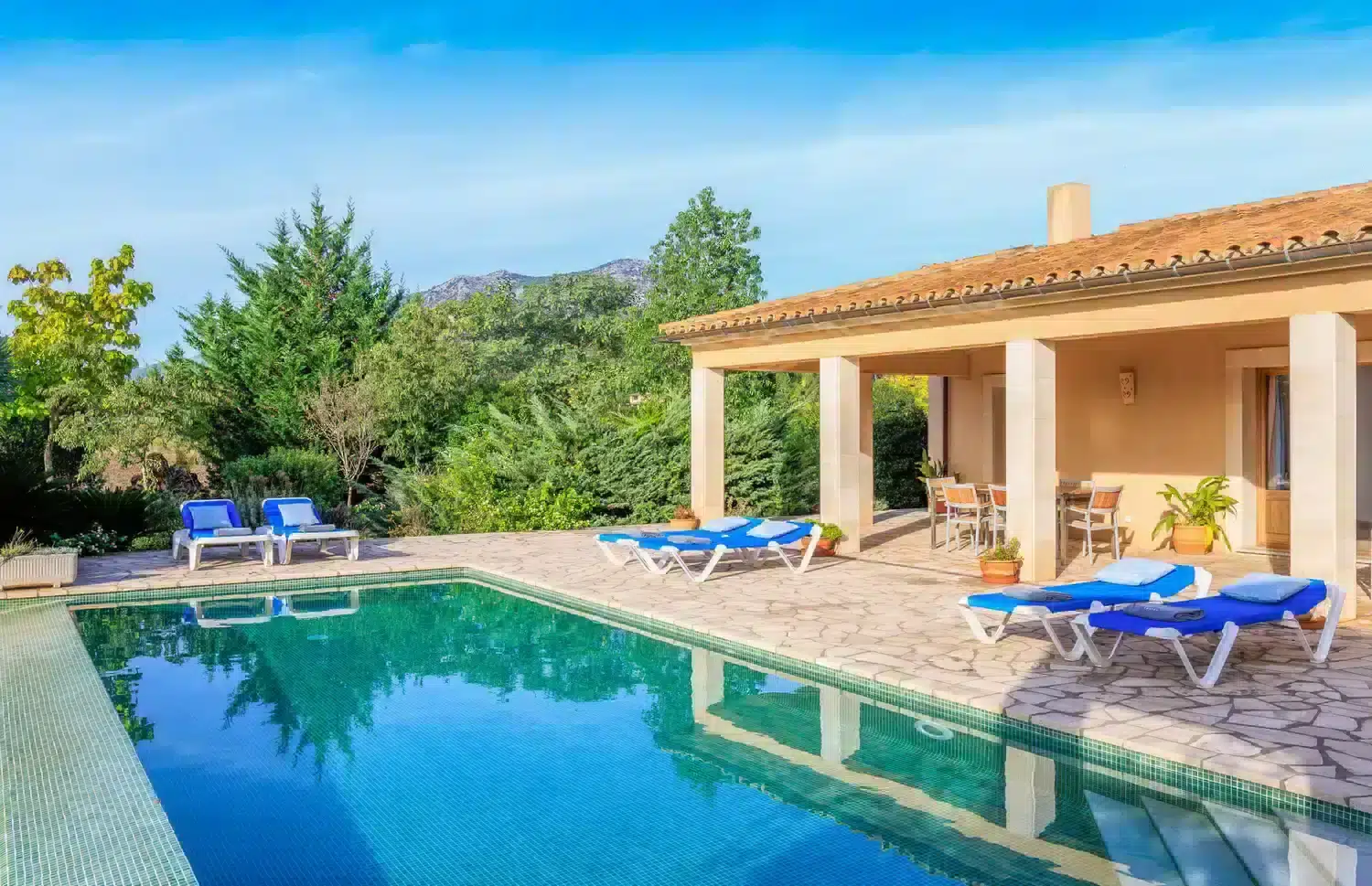 La propiedad se encuentra entre muy cerca de Pollensa , cerca de supermercados y otros servicios. Las playas más cercanas son la bonita Cala de San Vicente y Puerto de Pollensa. Pollensa es un pueblo mallorquín con gran encanto, muy acogedor con sus excelentes restaurantes en la plaza del pueblo como el “Q11” y “U Plaça” y su conocido mercado dominical. Además, el pueblo tiene sus conocidas escaleras del Calvario, 365 escalones que nos llevaran a la parte más alta del pueblo donde podremos disfrutar de unas vistas inmejorables del pueblo y sus montañas de alrededor, así como de las playas de Cala San Vicente, Puerto Pollensa y Puerto de Alcudia. El campo de golf de Pollensa se encuentra a pocos kilómetros de la casa.