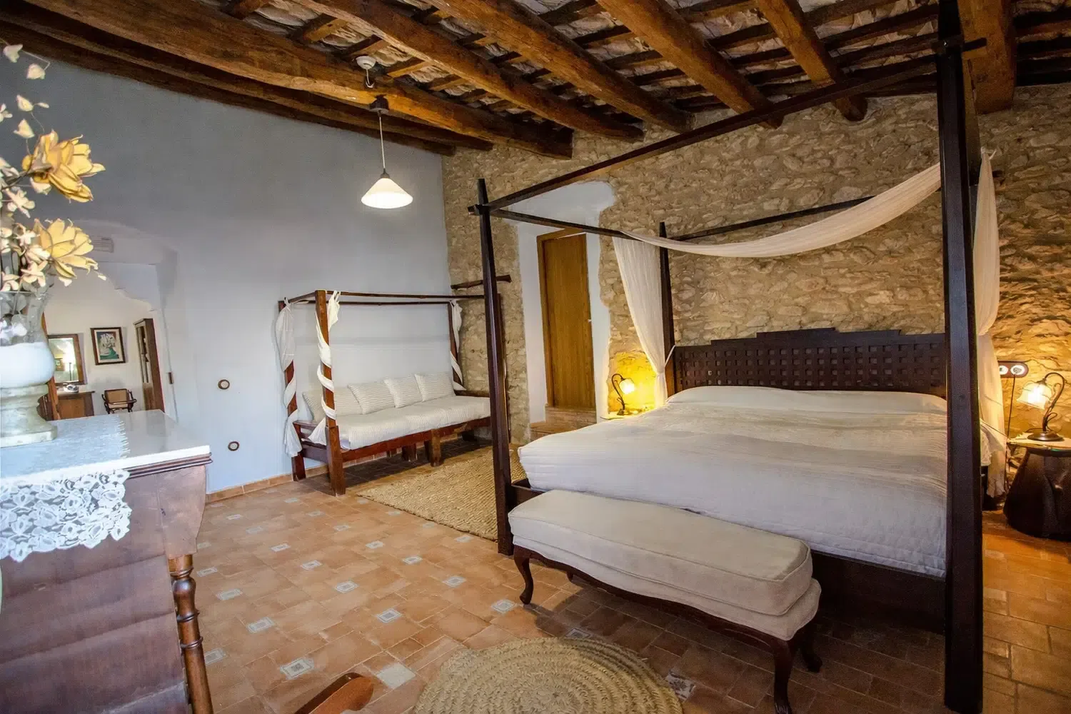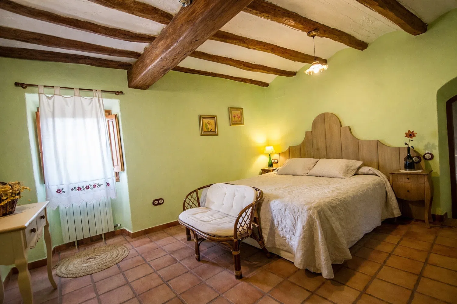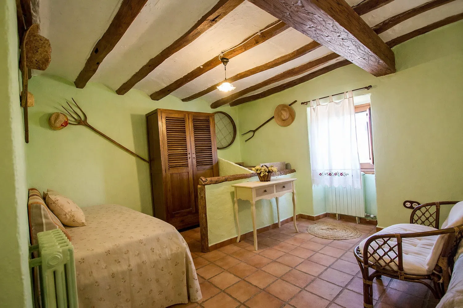 Dieciocho huéspedes pueden dormir en las seis habitaciones, la capacidad estándar es 13 personas, pero 5 camas adicionales se pueden añadir para acomodar al resto de la familia, por un suplemento diario por persona adicional. La planta baja cuenta con dos dormitorios: (1) una cama doble, una cama individual, baño privado, y (2) dos camas individuales y dos camas nido. En el segundo piso, las habitaciones son las siguientes: (1) una cama doble, una cama individual, baño privado, (2) una cama doble, un sofá cama, baño privado, (3) una cama doble, una cama individual, baño privado, y (4) una cama doble, cuarto de baño.