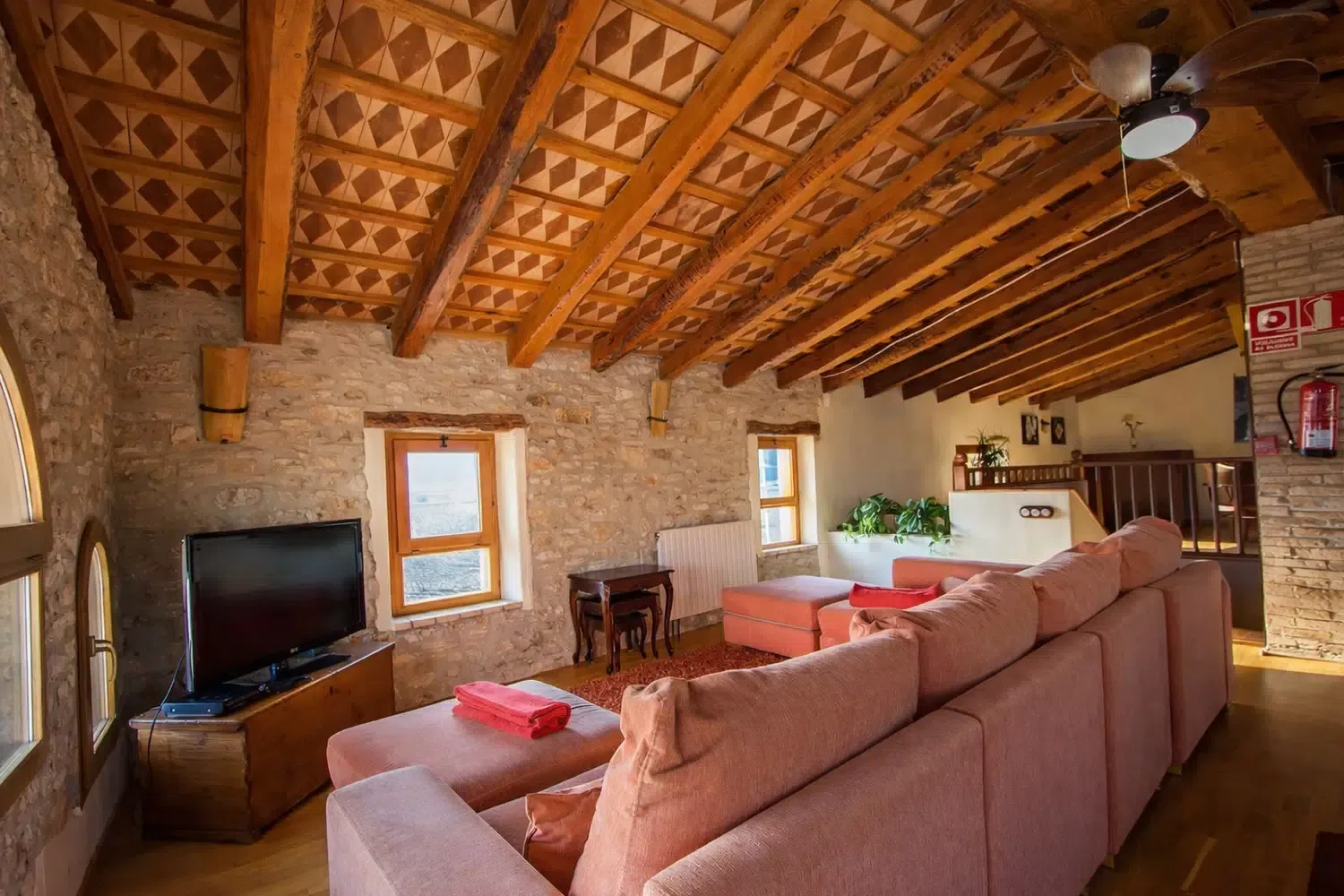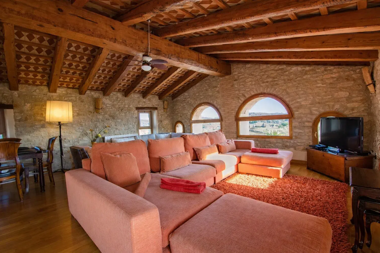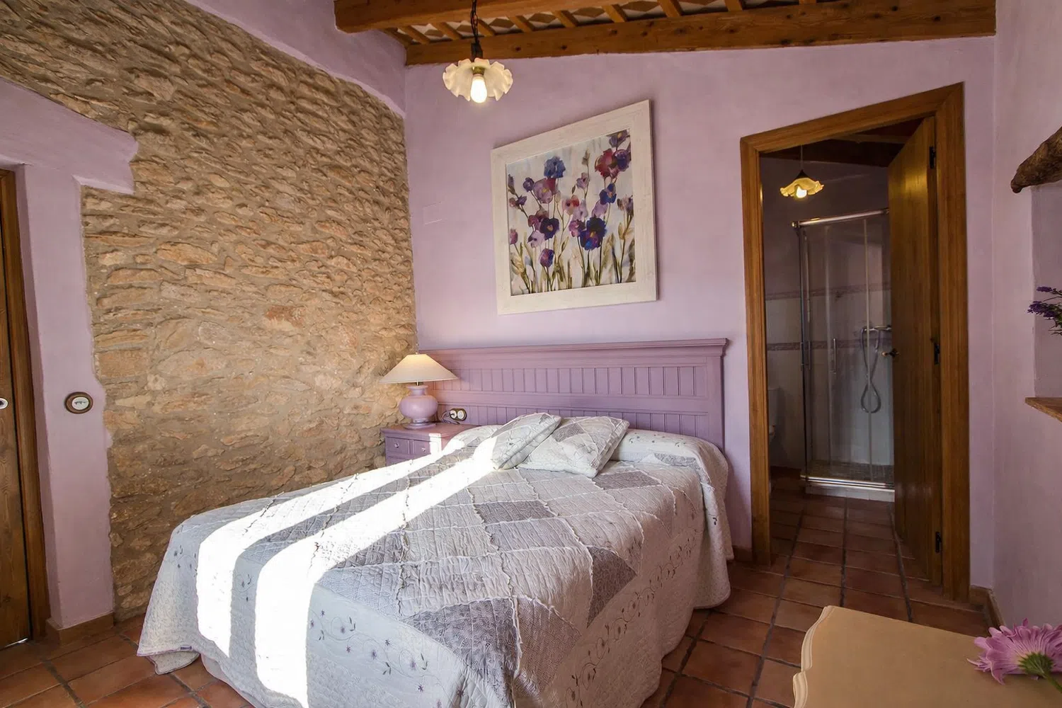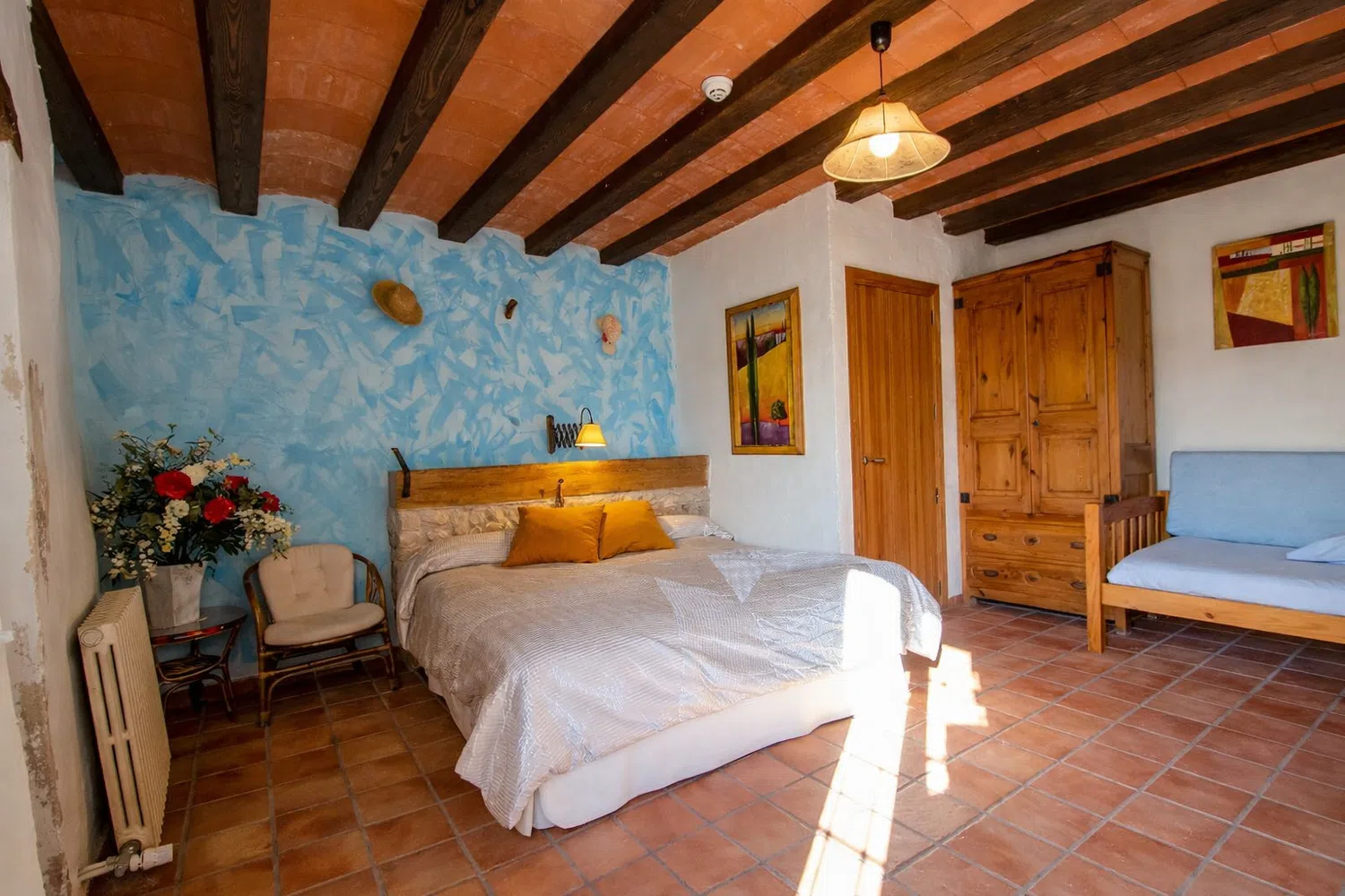 Dieciocho huéspedes pueden dormir en las seis habitaciones, la capacidad estándar es 13 personas, pero 5 camas adicionales se pueden añadir para acomodar al resto de la familia, por un suplemento diario por persona adicional. La planta baja cuenta con dos dormitorios: (1) una cama doble, una cama individual, baño privado, y (2) dos camas individuales y dos camas nido. En el segundo piso, las habitaciones son las siguientes: (1) una cama doble, una cama individual, baño privado, (2) una cama doble, un sofá cama, baño privado, (3) una cama doble, una cama individual, baño privado, y (4) una cama doble, cuarto de baño.