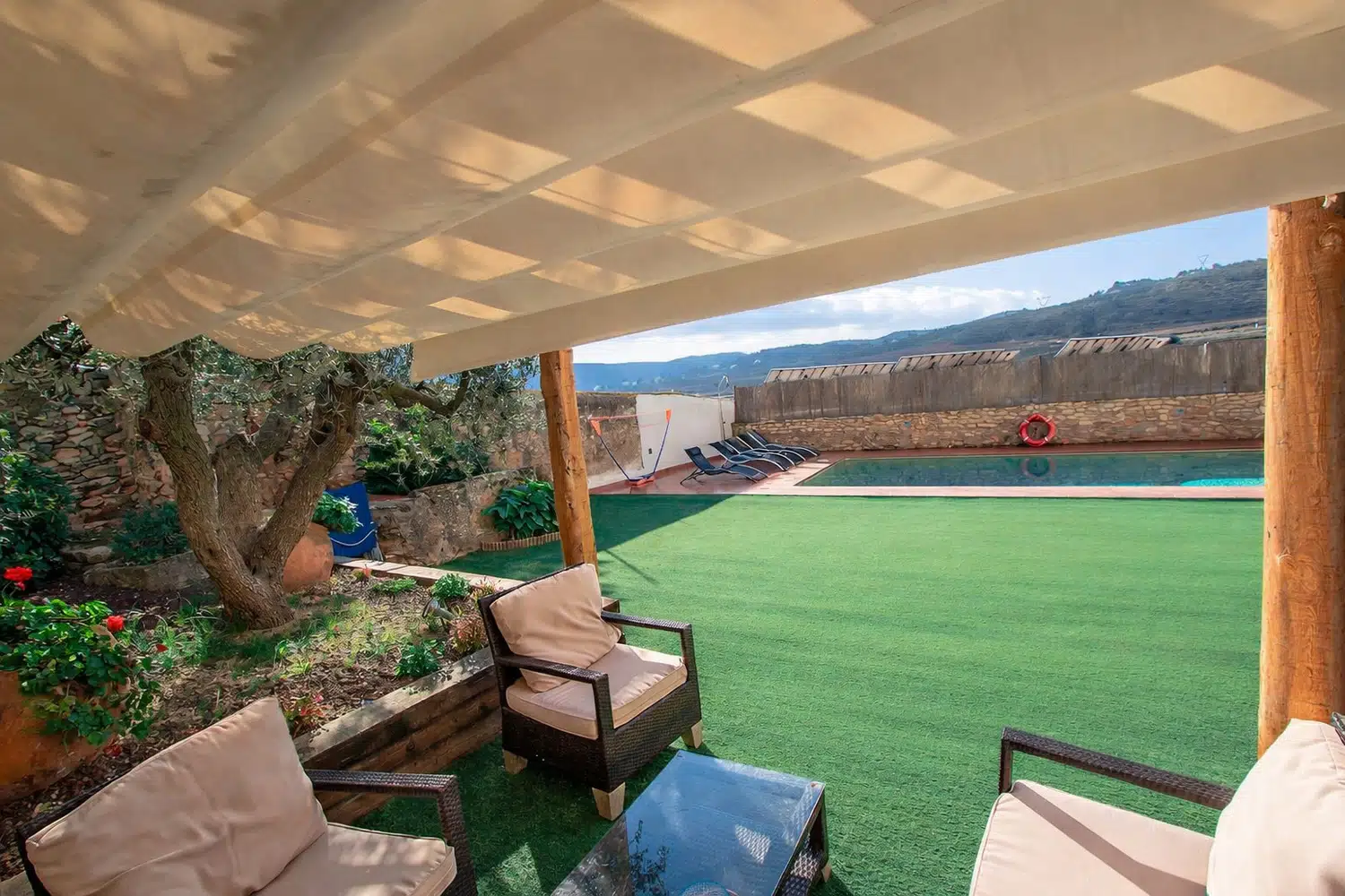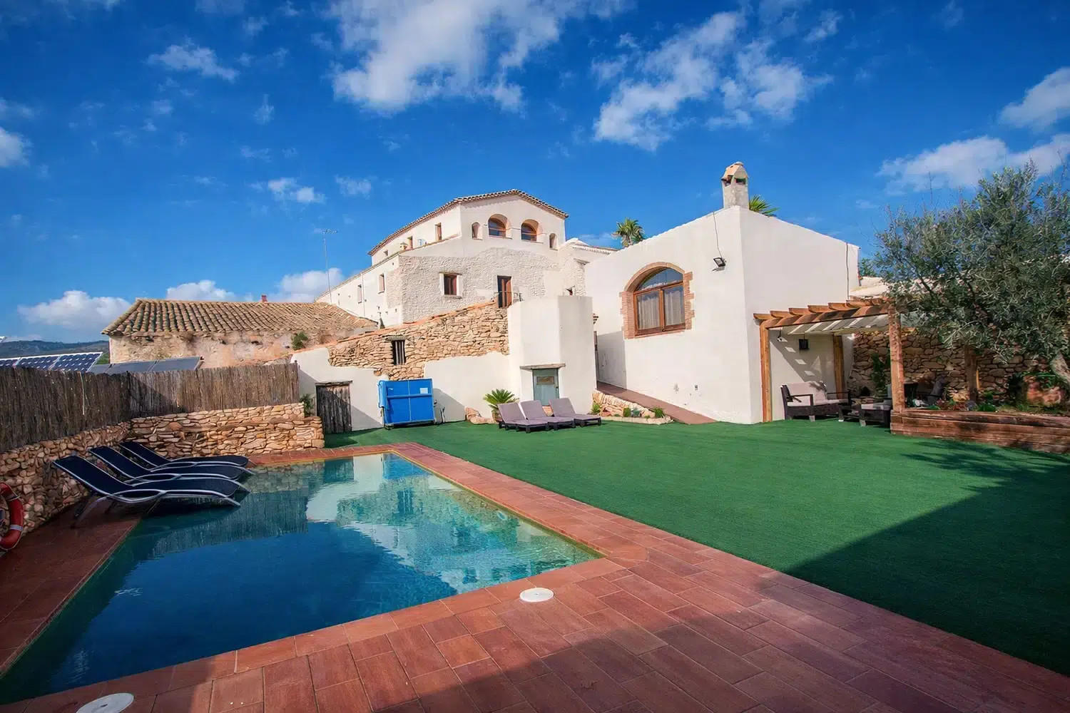 Maravíllate con la amplia vista de los viñedos de los alrededores y el campo español, desde el patio al aire libre con una barbacoa, sillas de la sala, y una piscina privada (4 mx 8 m, con una profundidad que va desde 0,90m a 1,70m), hasta donde la vista pueda llegar.