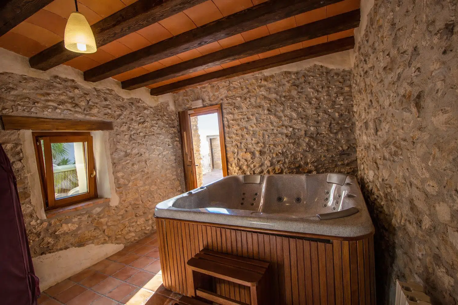 Originalmente construida en el siglo XIV, la villa ha sido recientemente renovada en 2010. La planta baja cuenta con una cómoda sala de estar con chimenea y sofás, un dormitorio con una cama doble y una cama individual, además de un cuarto de baño, una cocina rústica totalmente equipada, y una sala de juegos con mesa de billar.