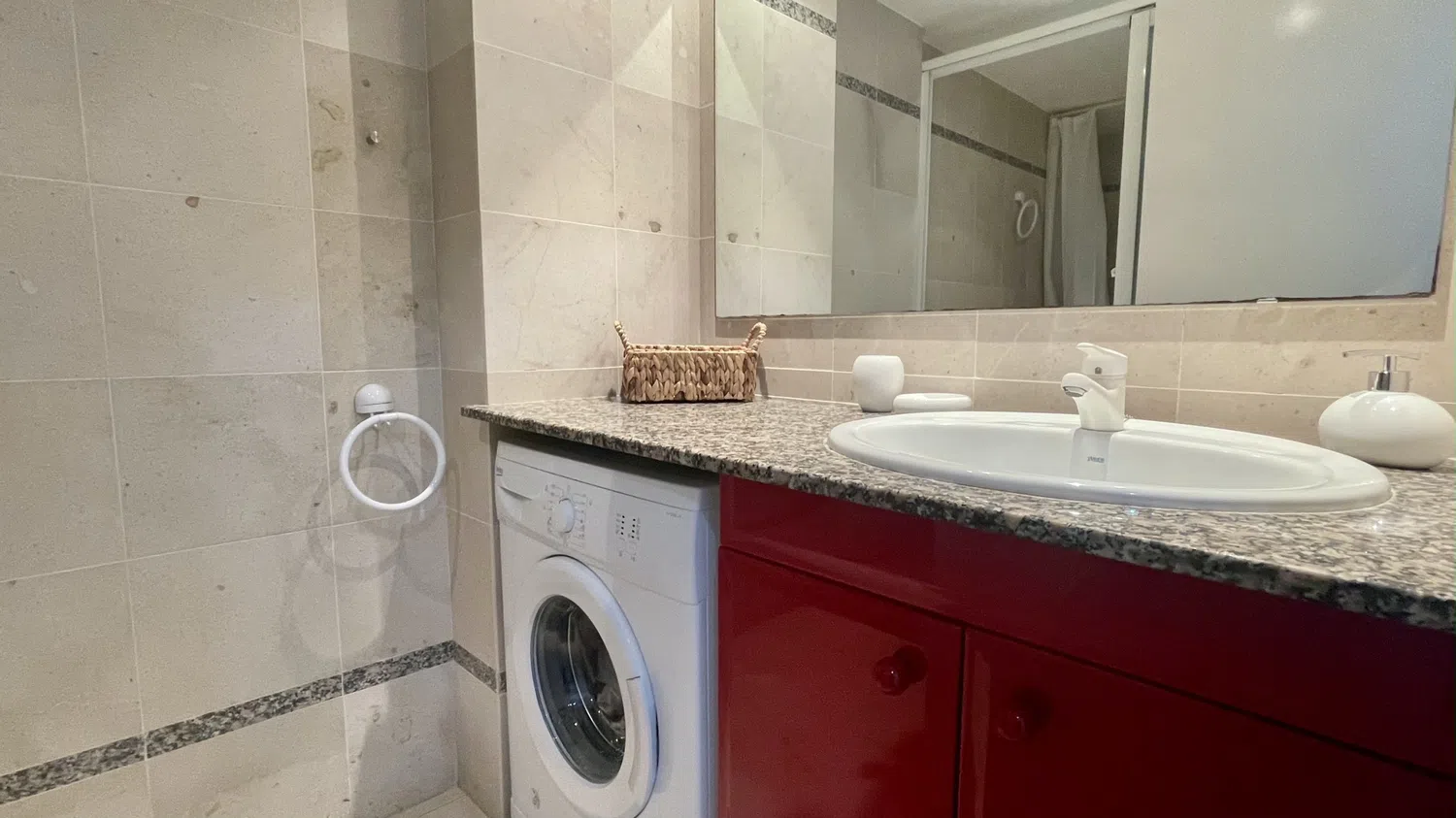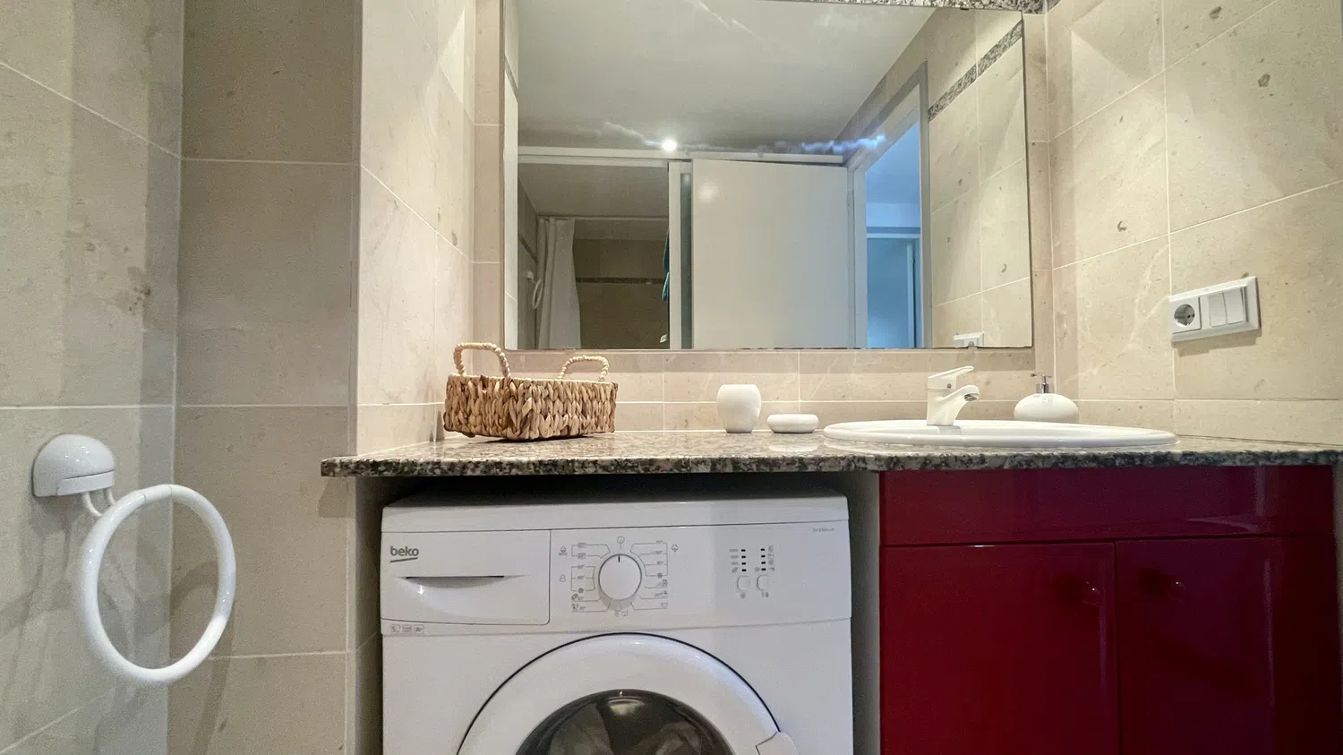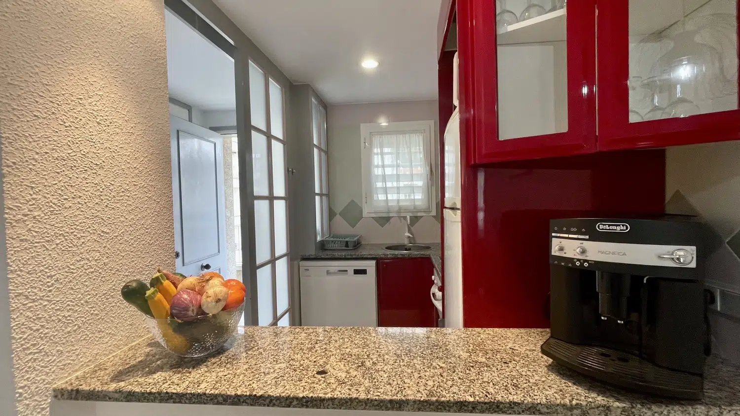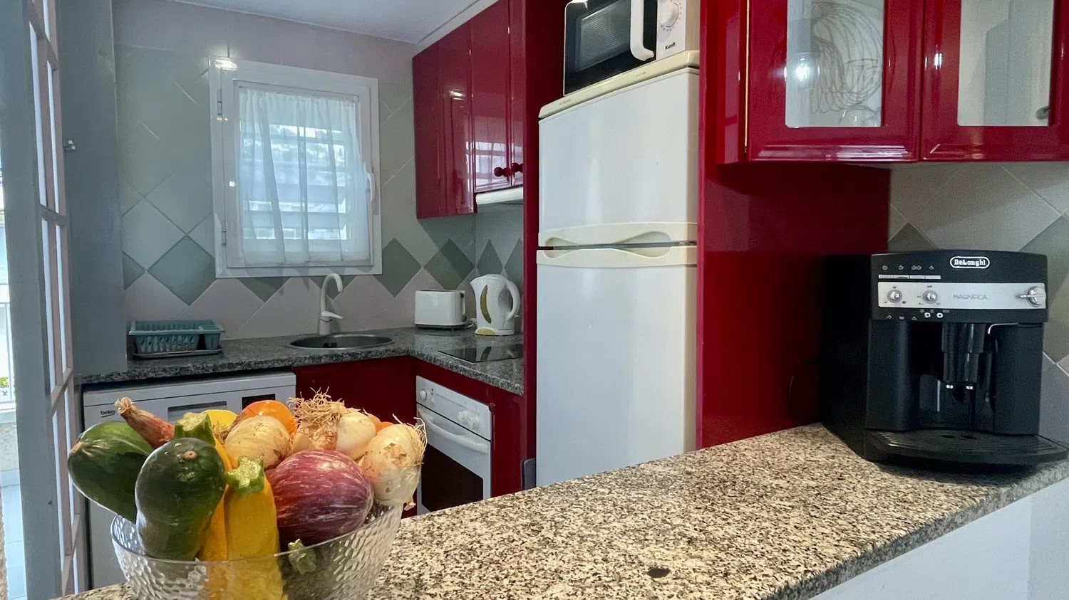 El alojamiento incluye una cocina americana completamente equipada con nevera, microondas, horno, congelador, lavadora, lavavajillas, vajilla, cubertería, utensilios de cocina, cafetera, tostadora y exprimidor. Además, la propiedad cuenta con plancha y acceso a Internet, sujeto a disponibilidad por un costo adicional de 10€ al día.