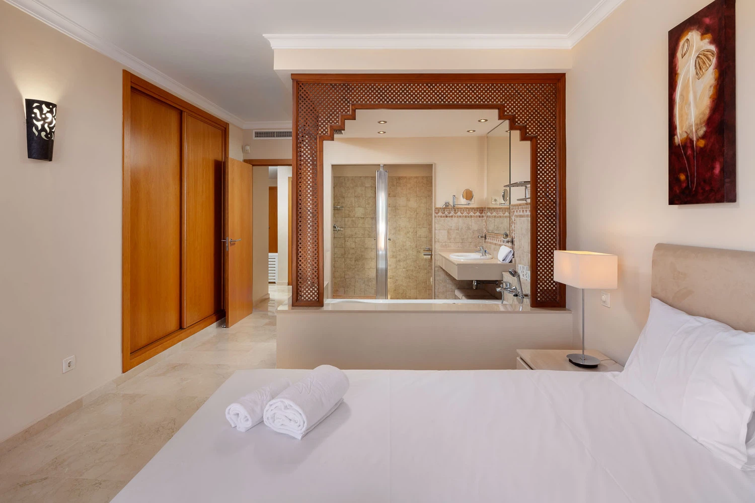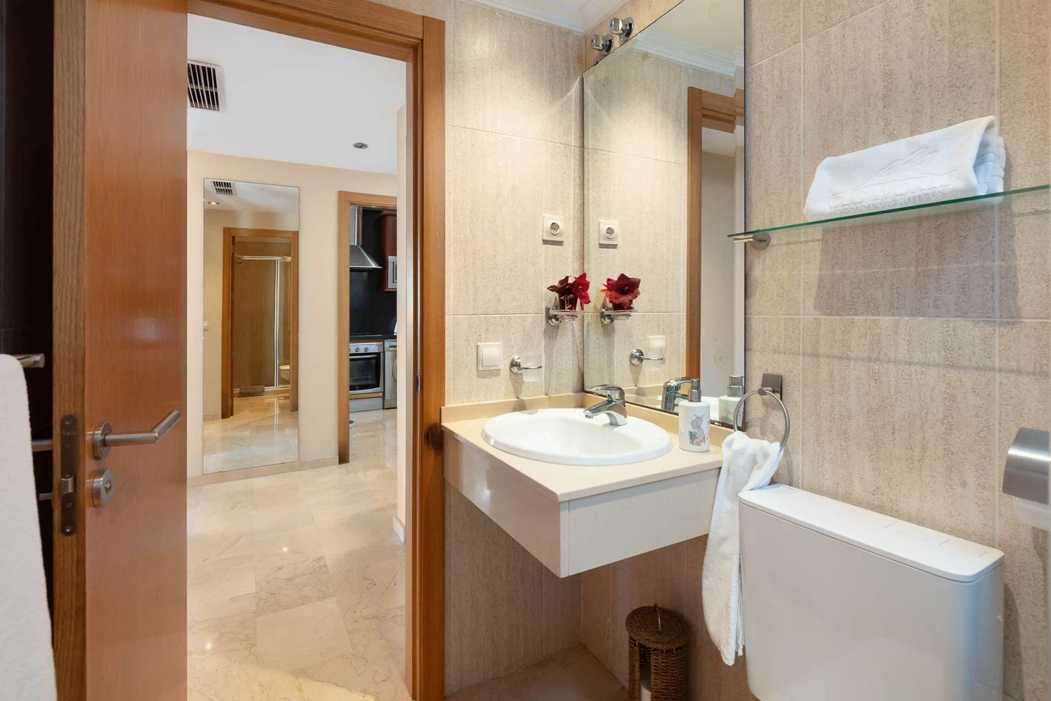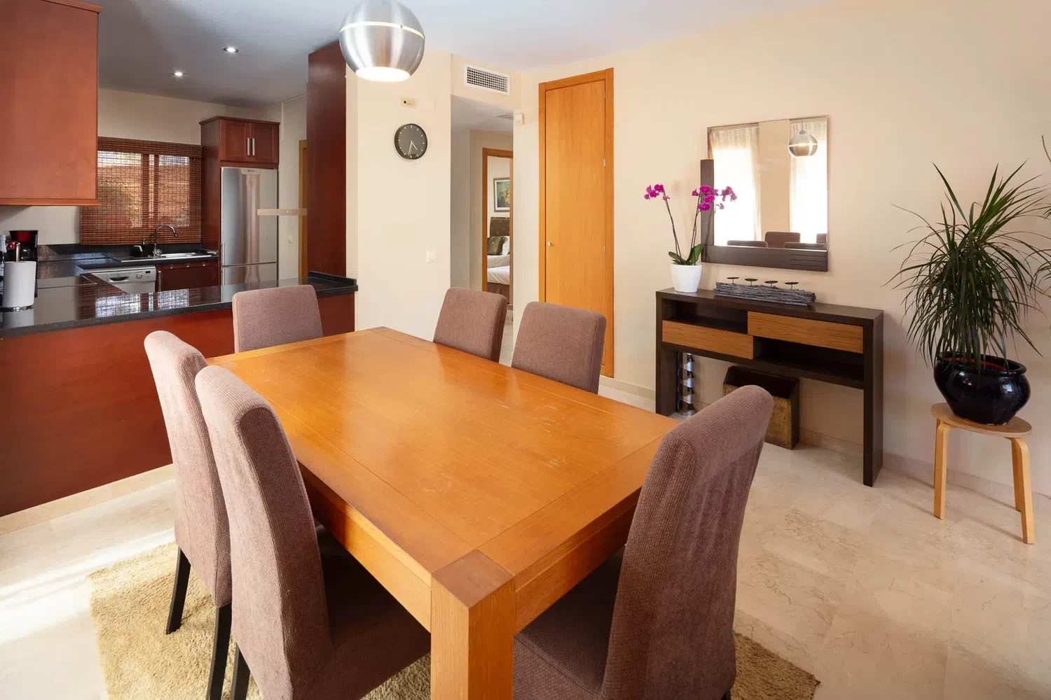 La cocina es un verdadero punto fuerte del apartamento, totalmente independiente y equipada con electrodomésticos de última generación: nevera, lavadora, lavavajillas, horno, microondas, máquina de café, tostadora y muchos más elementos que facilitarán la preparación de cualquier comida. Además, dispone de conexión WiFi, aire acondicionado, calefacción por bomba de calor y tres televisores con canales en varios idiomas.