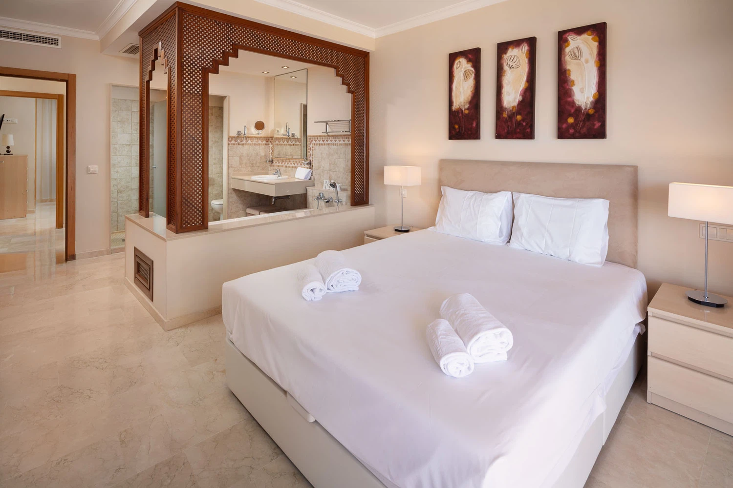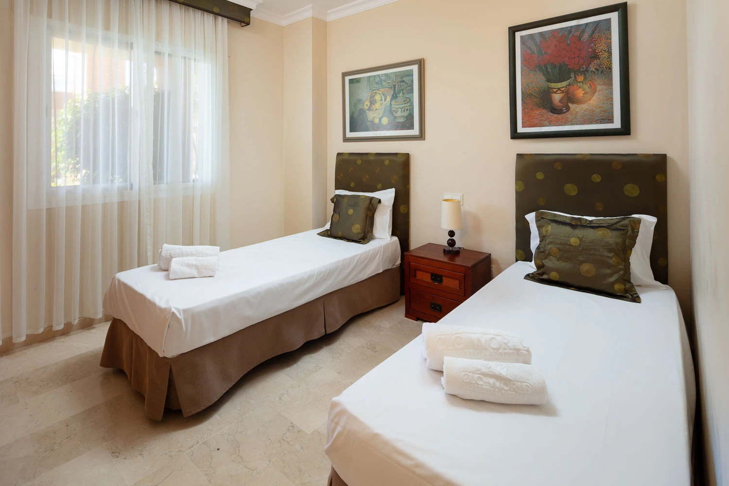 La vivienda cuenta con dos dormitorios completamente equipados: una habitación con cama doble y otra con dos camas individuales, además de un sofá cama doble que permite alojar a todos los huéspedes con total comodidad. Dos baños (uno con ducha y otro con bañera) garantizan la privacidad y el confort de todos los ocupantes.