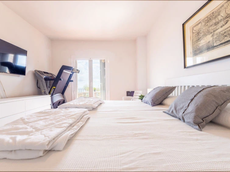 "Cantamar", casa pareada 5 estancias 140 m2. Vivienda adecuada para 6 adultos + 2 niños. Con mobiliario funcional y agradable: salón-comedor con TV satélite, aire acondicionado y bomba de calor, caliente. Salida al jardín, al balcón acristalado con aire acondicionado. Cocina (5 fogones, horno, lavavajillas, tostadora, hervidor de agua eléctrico, microondas, cafetera eléctrica, Cápsulas de café (Nespresso) extra). Ducha/WC. Energía solar. Planta superior: 1 dorm. con 1 cama de matrimonio (180 cm, 200 cm de longitud), aire acondicionado y bomba de calor, caliente. 2 dorm., cada habitación con 2 camas (90 cm, 200 cm de longitud), aire acondicionado y bomba de calor, caliente. 1 dorm. con 1 x 2 literas, aire acondicionado y bomba de calor, caliente. Ducha/WC. Terraza 8 m2. Muebles de terraza, barbacoa, tumbonas (2), invernadero. Vista panorámica espléndida al puerto y al mar. El alojamiento dispone de: lavadora, plancha, trona, cuna hasta 3 años, secador de pelo. Internet (Wifi, gratis). Plaza de aparcamiento junto a la casa. A tener en cuenta: casa para no fumadores. 1 mascota / perro. TV solamente DE. La piscina descrita es de uso privado. HUTT-062749