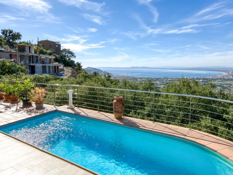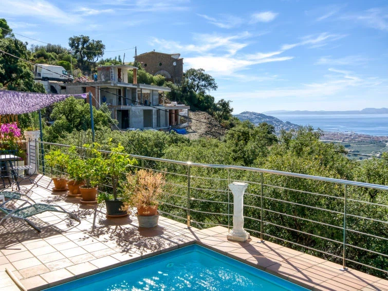 Villa 3 estancias 135 m2, orientación sur. Salón-comedor con (140 cm, 190 cm de longitud), mesa de comedor, TV y aire acondicionado. Salida a la terraza, a la piscina. 1 dorm. con 1 cama de matrimonio (160 cm, 200 cm de longitud), baño/WC, aire acondicionado y bomba de calor, caliente. Salida a la terraza, a la piscina. 1 dorm. con 1 cama de matrimonio (140 cm, 190 cm de longitud), ducha/WC. Cocina abierta (horno, lavavajillas, 3 Placas de inducción, tostadora, hervidor de agua eléctrico, congelador, cafetera eléctrica) con barra americana. WC separado. Terraza grande. Muebles de terraza. Vista panorámica al mar y al paisaje. El alojamiento dispone de: lavadora. Internet (Wifi, gratis). Plaza de aparcamiento. A tener en cuenta: casa para no fumadores. TV solamente FR. Sin ascensor. Importante :Armario en hab. matrimonio parcialemente cerrado privado.Toldo con sensor de viento. ACCESO MUY EMPINAD0. HUTG-058543