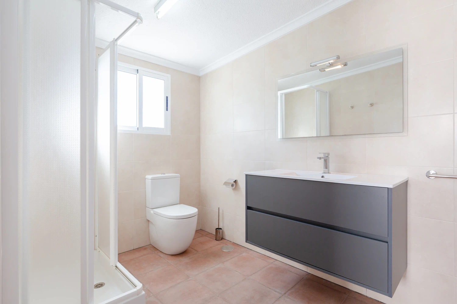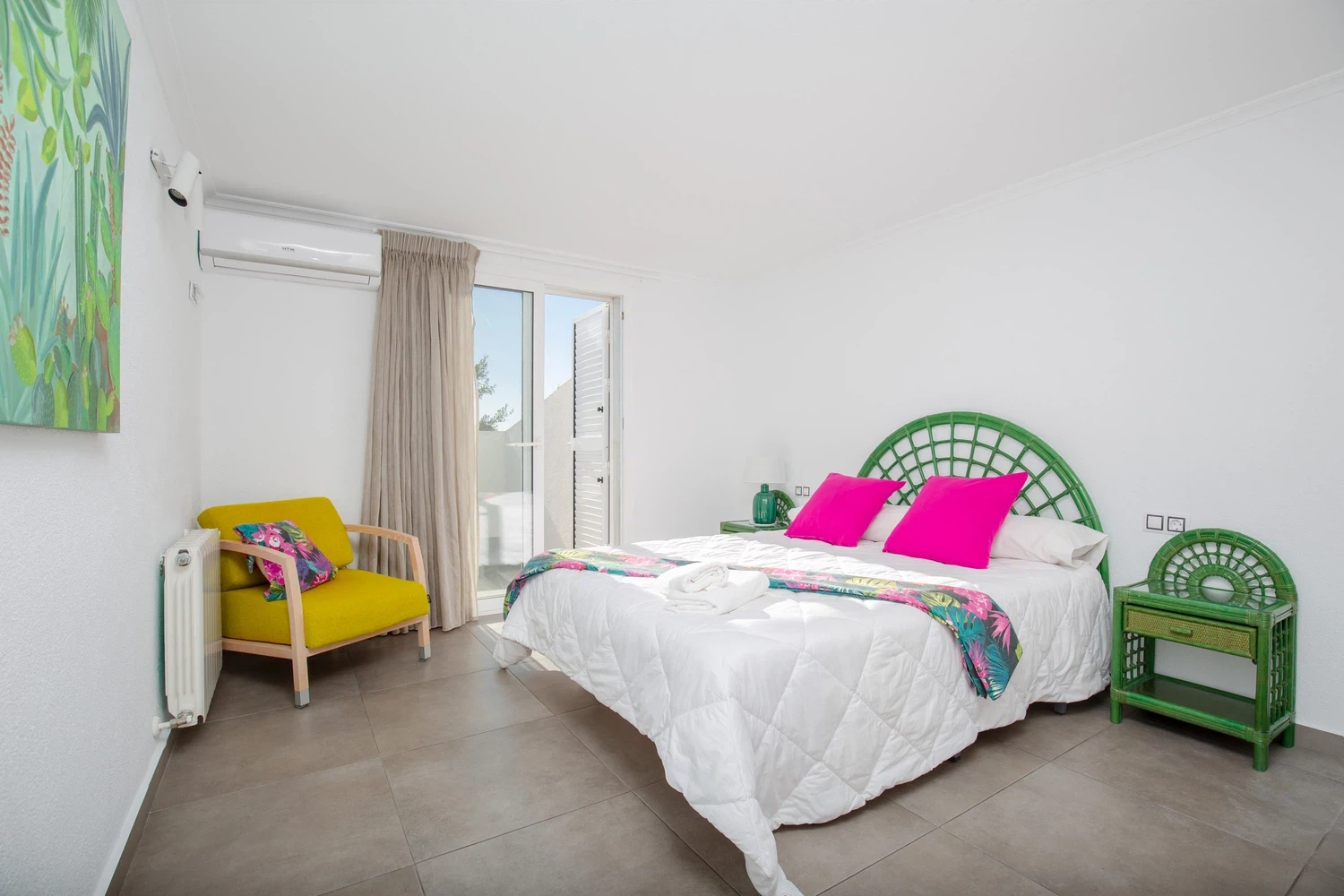 La villa dispone de pista de tenis, piscina y barbacoa privada, con un gran jardín, ideal para celebraciones. Los vestuarios con baño se encuentran en la zona de la piscina, sin necesidad de entrar en la villa. El aire acondicionado y los ventiladores de techo en el resto de la casa son ideales cuando hace calor. En el interior podemos encontrar en la planta baja una cocina totalmente equipada con isla y comedor, lavadero, comedor principal y mirador y una segunda sala de estar con una impresionante chimenea, baño y dos dormitorios, otra sala de juegos con mesa. también dispone e un pequeño gimnasio con baño completo