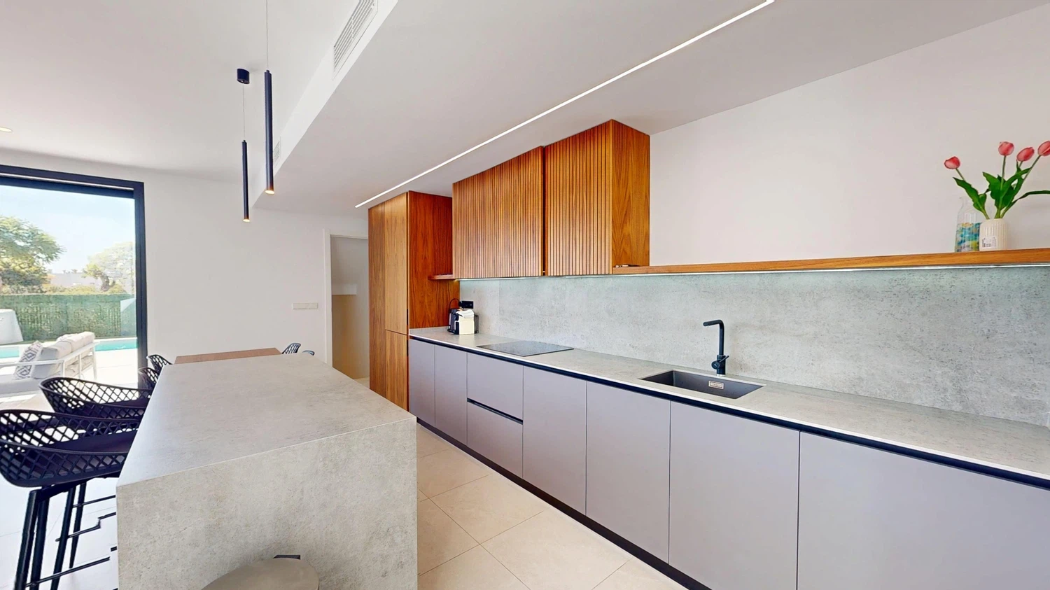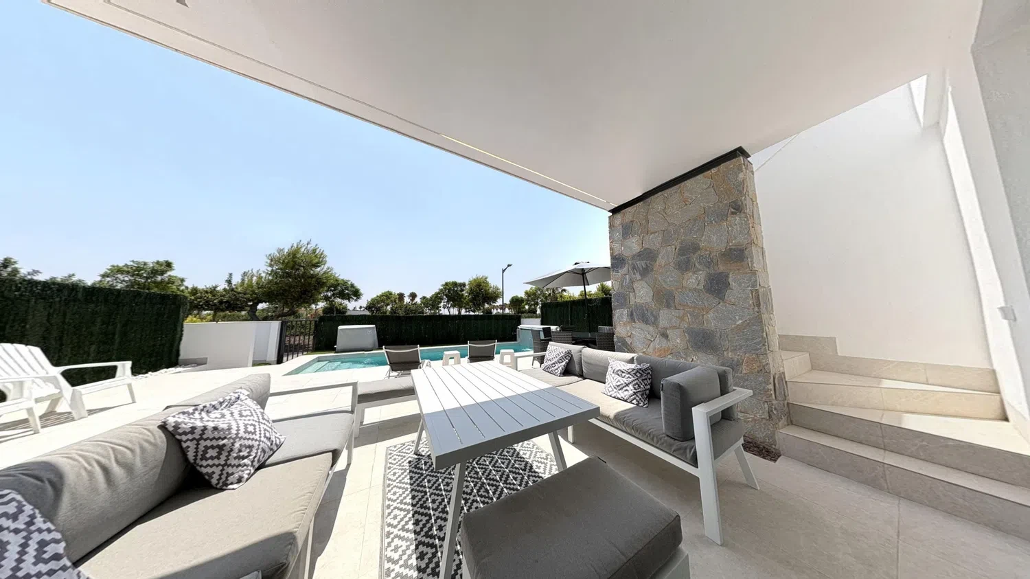 Lujosa villa de 5 dormitorios y 3 baños en el nuevo Santa Rosalia Lake and Life Resort. Distribuida en 2 plantas, la planta superior cuenta con cocina completa y la planta baja con zona de aperitivos. Terraza en la azotea con zona de estar y relax.
