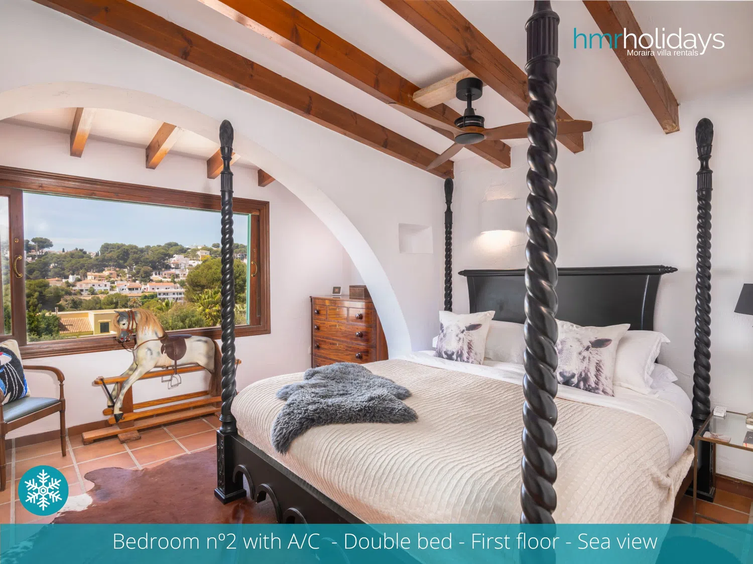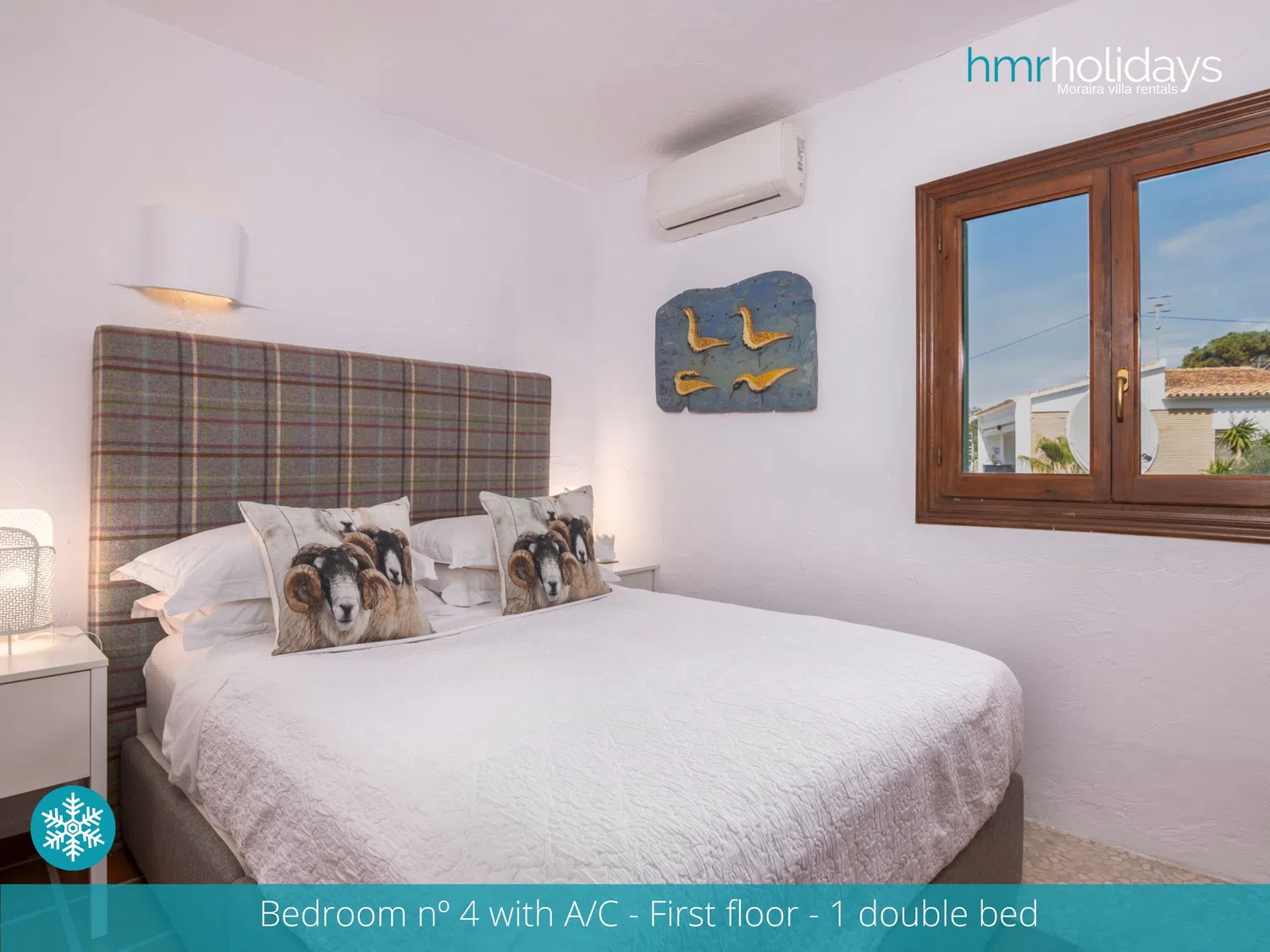 La villa cuenta con cuatro dormitorios confortables y dos baños, ideal para familias o grupos de amigos que buscan una estancia relajada junto al mar. Todos los dormitorios disponen de aire acondicionado y colchones de calidad para garantizar el máximo descanso.
