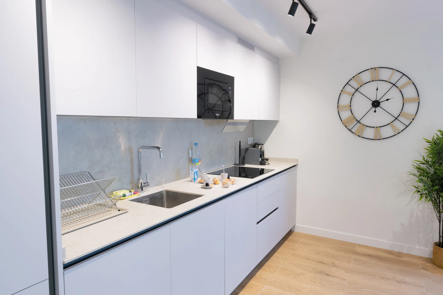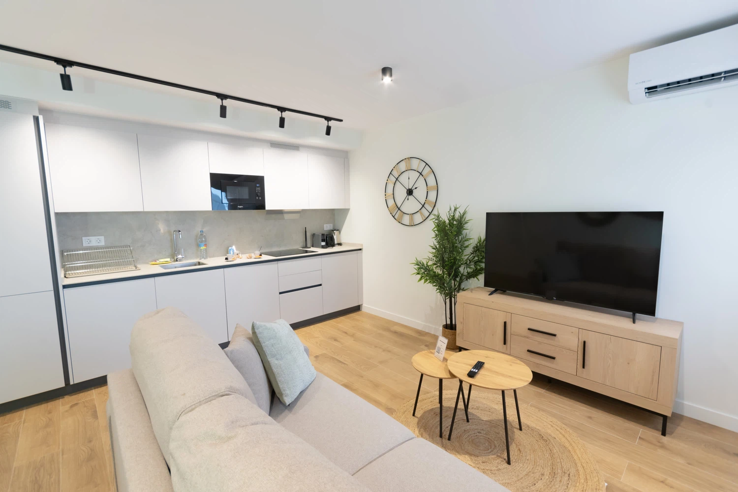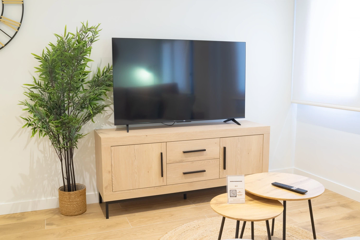Amplio y moderno apartamento de 1 habitación en pleno centro de Oviedo. Ideal para quienes buscan comodidad y funcionalidad. Dispone de cama doble, baño completo y un aseo adicional, cocina equipada, comedor y zona de estar con TV. Ubicado en el conjunto de Apartamentos Pedregal, a 3 min de la estación de tren y 5 min de la de autobuses. Muy cerca del casco histórico, la catedral y principales atracciones de la ciudad.
