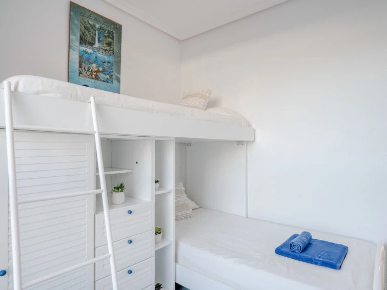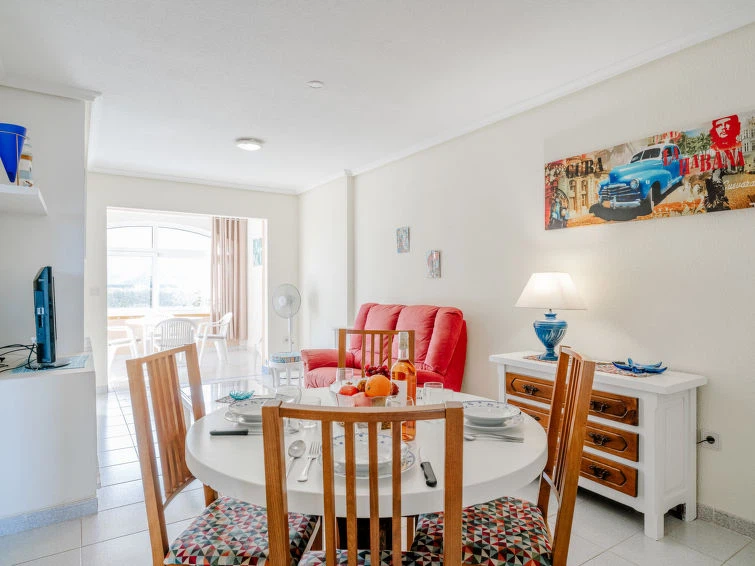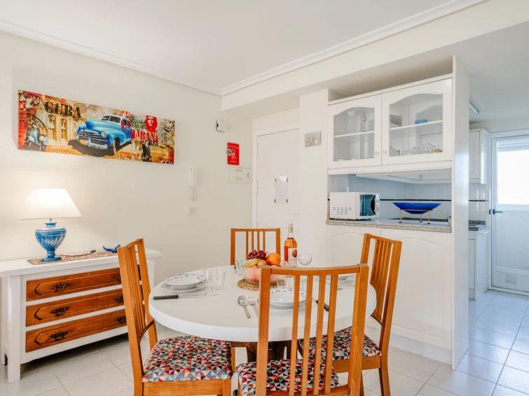 "Bahia de Denia", apartamento de 3 estancias 70 m2. Con mobiliario bonito y agradable: salón-comedor con TV digital y ventilador. Salida a la terraza. 1 dorm. con 1 cama de matrimonio (140 cm, 190 cm de longitud), ventilador. 1 dorm. con 1 x 2 literas (90 cm, 190 cm de longitud), ventilador. Cocina abierta (horno pequeño, lavavajillas, 4 fuegos, tostadora, hervidor de agua eléctrico, microondas, congelador, cafetera eléctrica, Cápsulas de café (Senseo) extra). Baño/WC. Ningún tipo de calefacción. Terraza grande 15 m2. El alojamiento dispone de: lavadora, plancha, secador de pelo. Internet (Wifi, gratis). Plaza de aparcamiento n. 24. A tener en cuenta: TV solamente ES. VT-455976-A