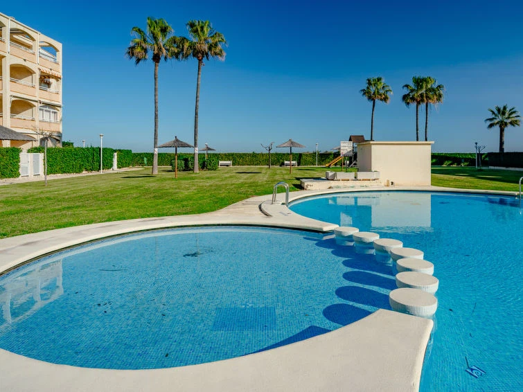 Casa de apartamentos "Bahia de Denia", amplio, moderno, agradable. En la localidad, a 7 km del centro de Denia, lugar tranquilo, soleado, a 40 m del mar, a 40 m de la playa, acceso directo a la playa. Comunitario: jardín grande, bonito, cuidado con césped, 2 piscinas rectangular (22 x 13 m, 40 - 180 cm de profundidad, Disponible por temporada: 01.Ene. - 31.Dic.) con escalera interior. Piscina para niños, ducha exterior, parque infantil, Aparcamiento en el mismo terreno. Supermercado 1.8 km, restaurante 100 m, café 1 km, parada de autobús 140 m, playa de arena "Playa Els Molins" 10 m. Puerto deportivo 7 km, escuela de surf 1.5 km, escuela de vela 7 km, tenis 6 km. A tener en cuenta: sin ascensor. El propietario no acepta grupos de adolescentes/jóvenes.