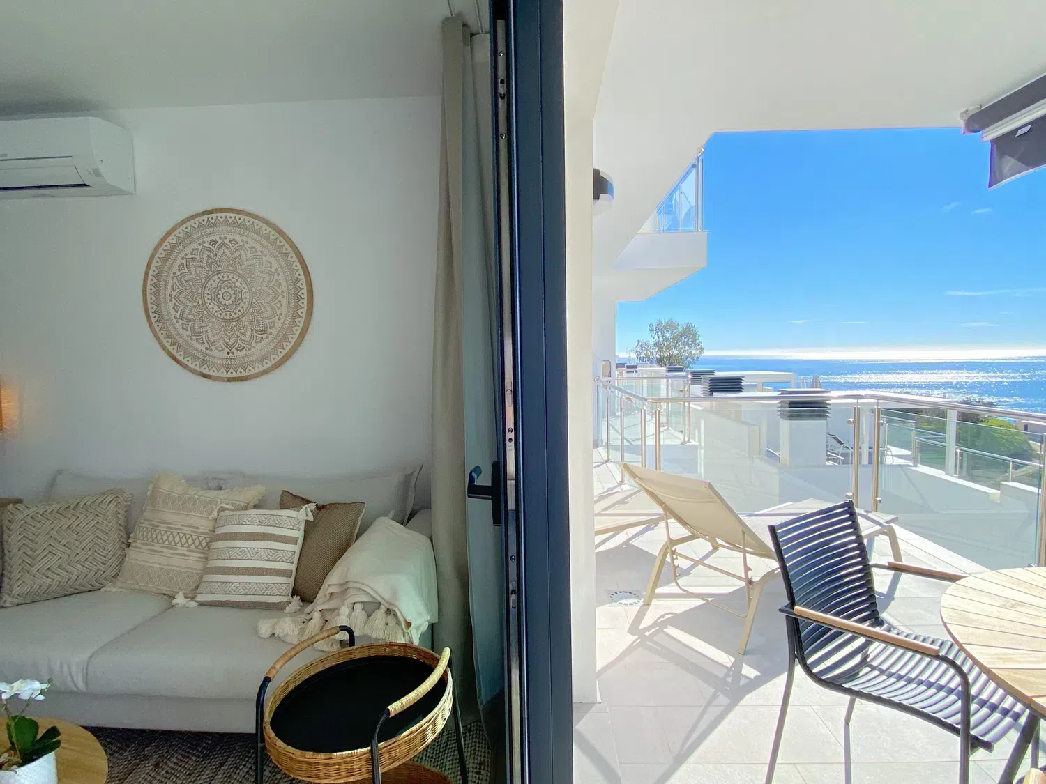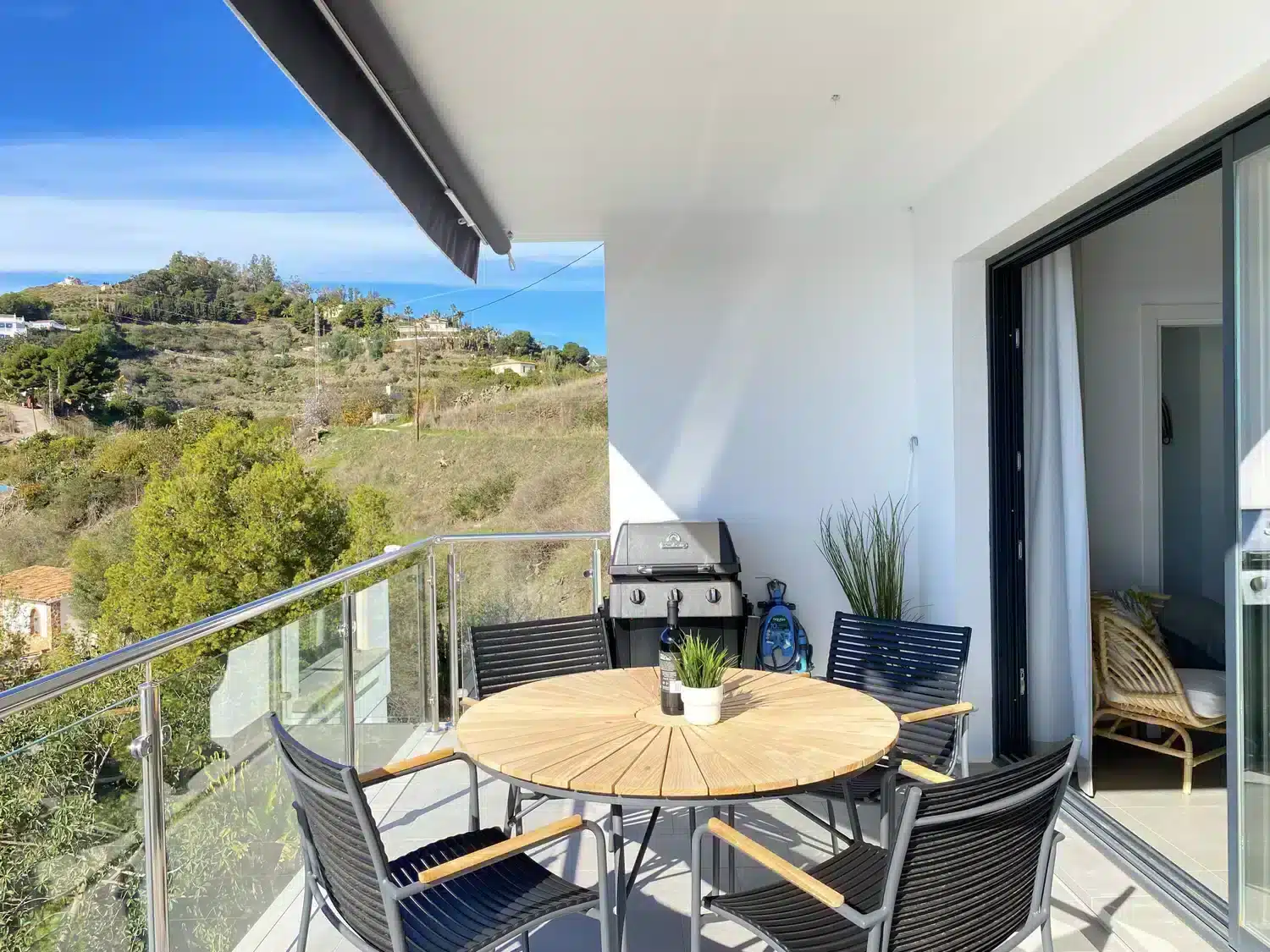 Saborea el máximo lujo y relajación en nuestro espectacular apartamento con incomparables vistas al mar. Disfruta de las hermosas vistas desde la amplia terraza, con barbacoa y tumbonas.