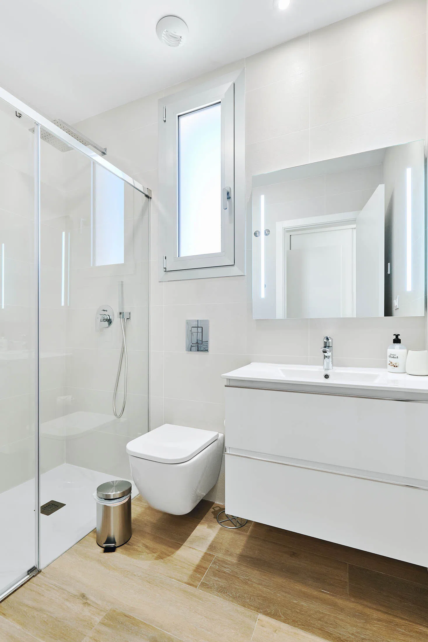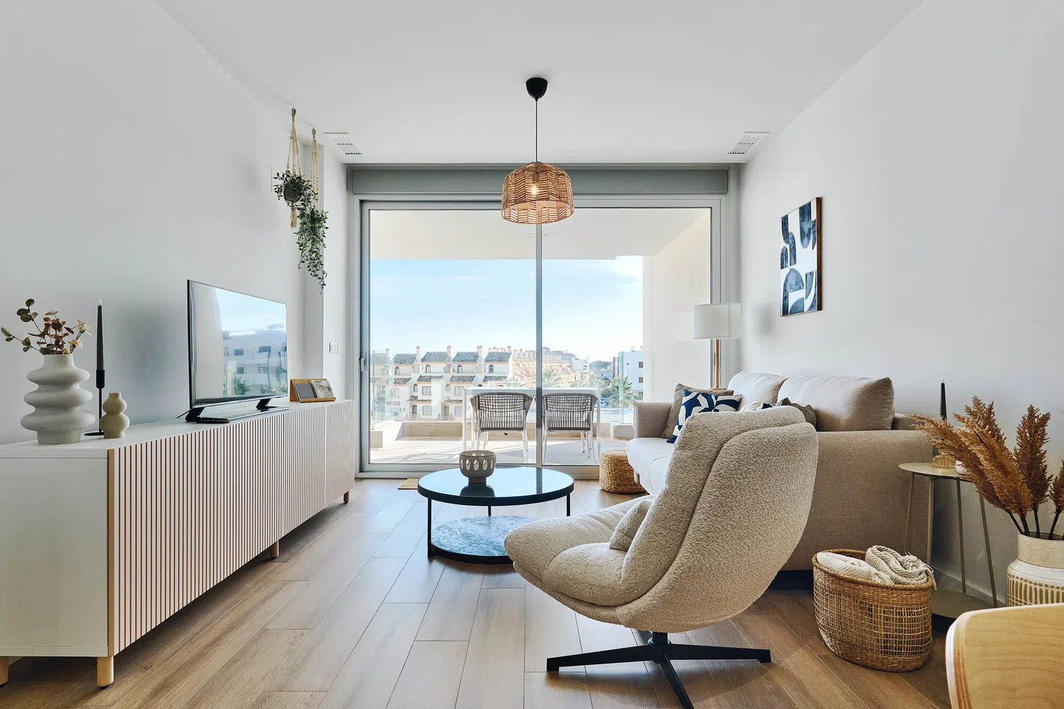 El apartamento está amueblado con gusto y cuenta con una terraza privada de 25 m2 con vistas a la piscina compartida. Dispone de aire acondicionado en toda la vivienda y calefacción central, garantizando el confort durante todo el año.