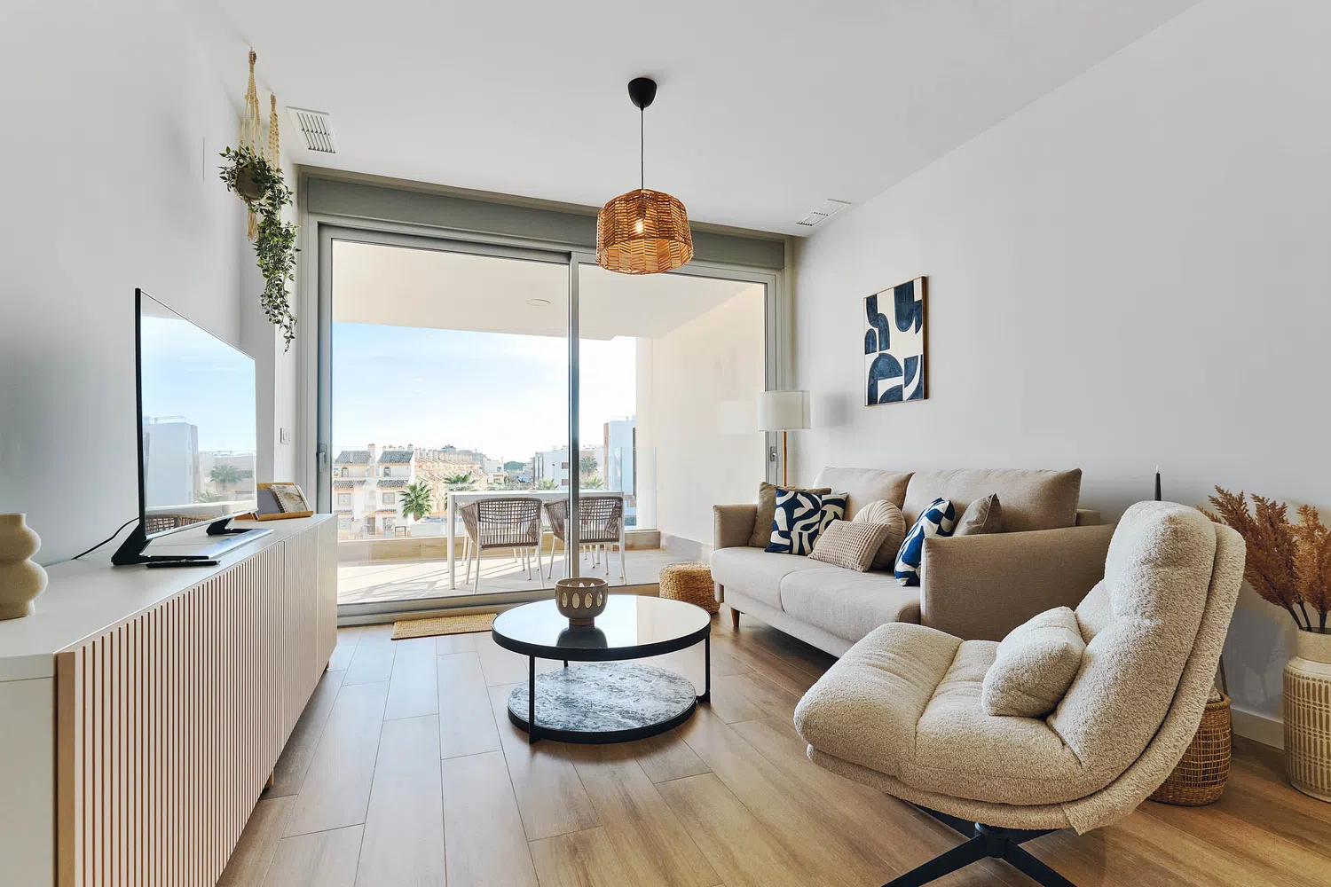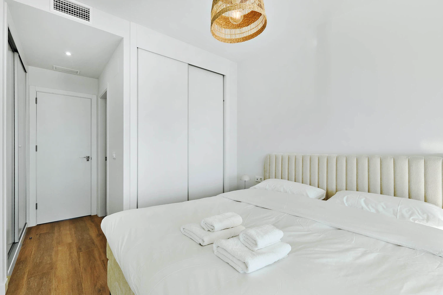 Este acogedor apartamento de reciente construcción se encuentra en una ubicación ideal para familias y parejas, justo al lado del mar. Cuenta con 2 dormitorios y 2 baños, y puede alojar cómodamente hasta 4 personas.