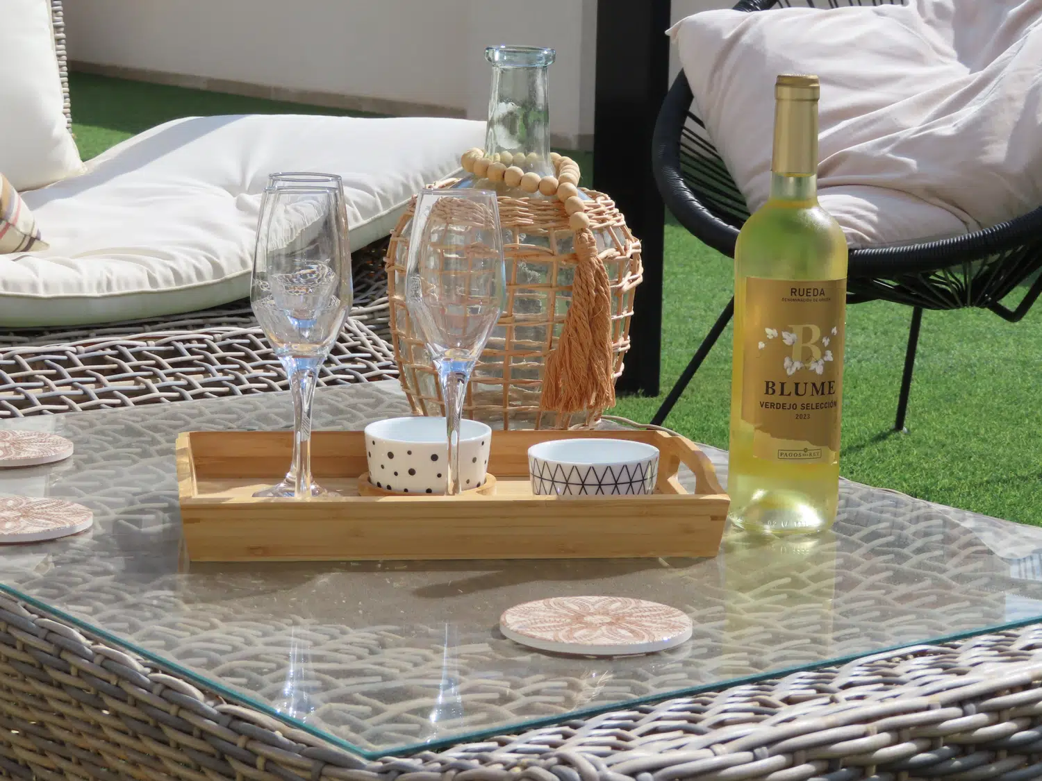 Disfrute del sol, la tranquilidad y el confort en este precioso apartamento decorado al estilo ibicenco en la popular urbanización El Raso, a solo 5 minutos de la playa de Guardamar del Segura (provincia de Alicante).