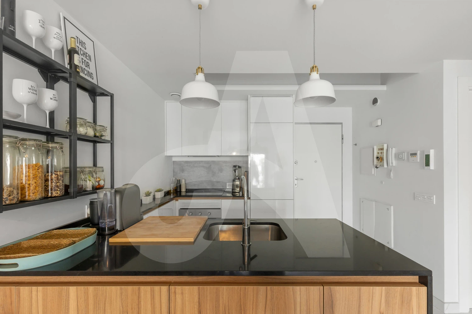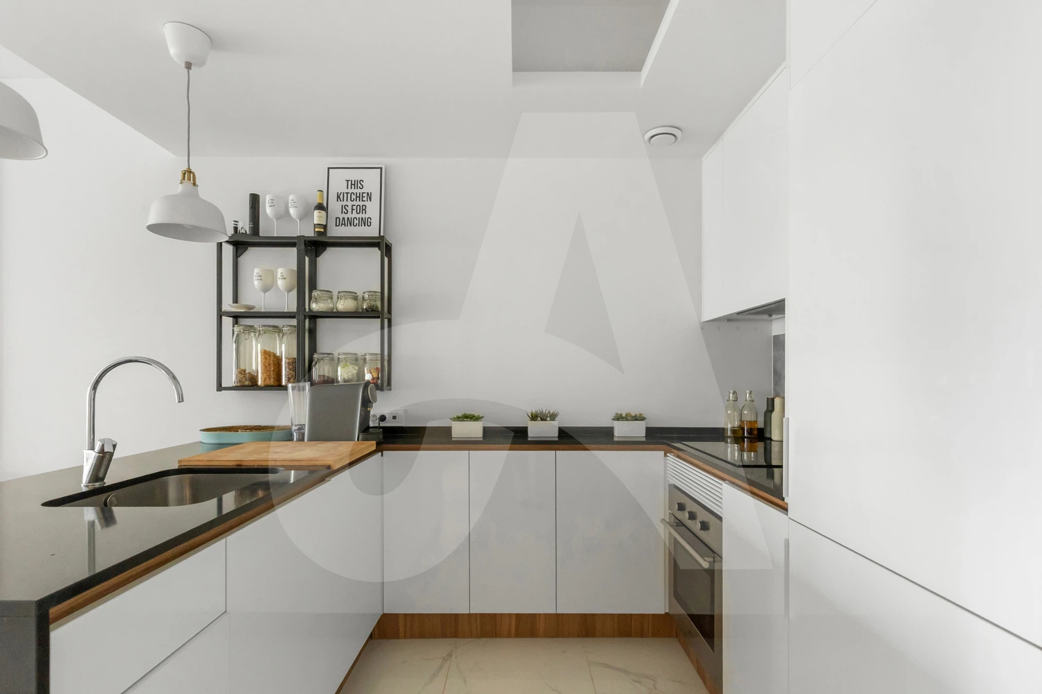 lavavajillas, horno, placa de inducción, freidora sin aceite, batidora, exprimidor, cafetera de cápsulas L'Or, batidora, etc.