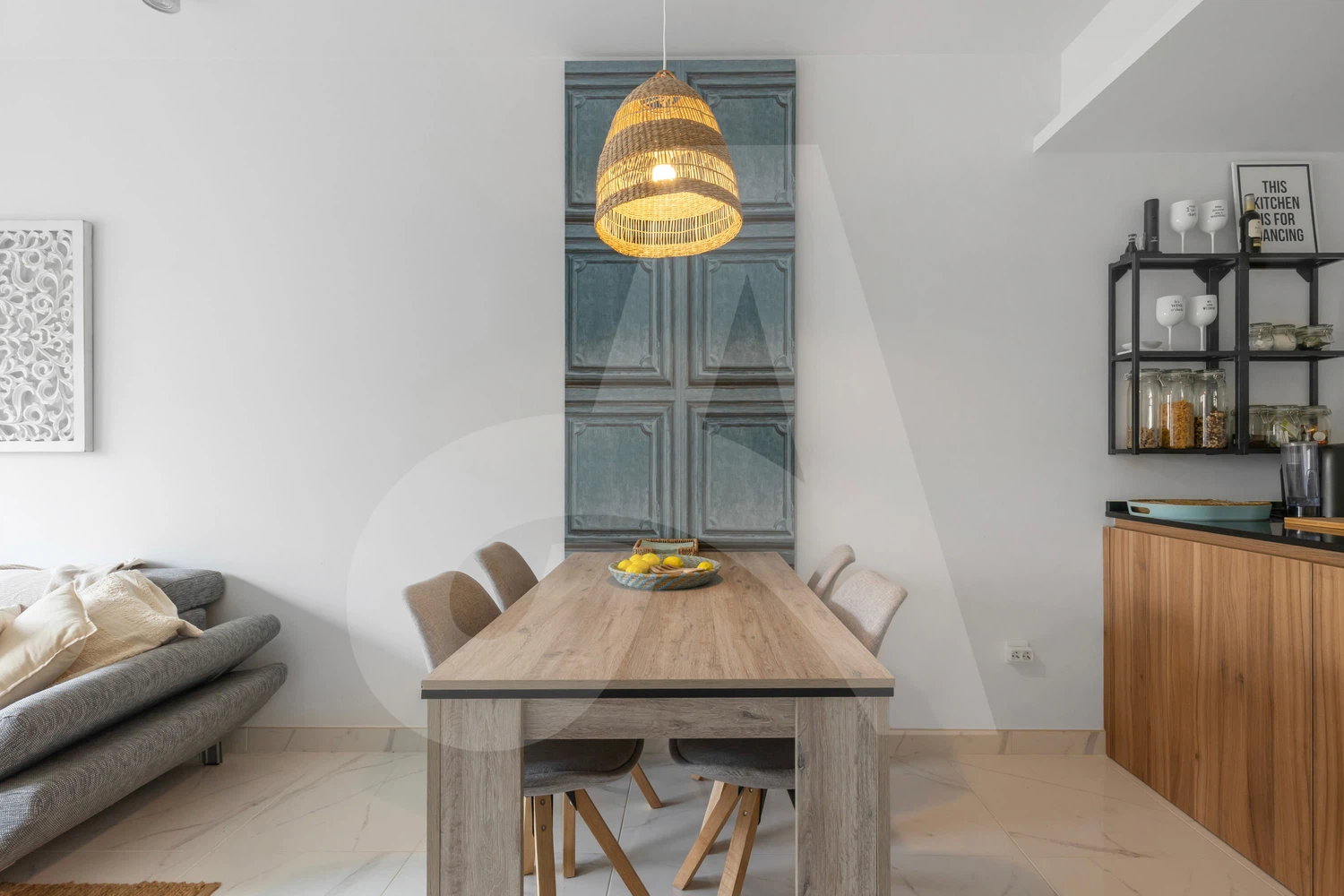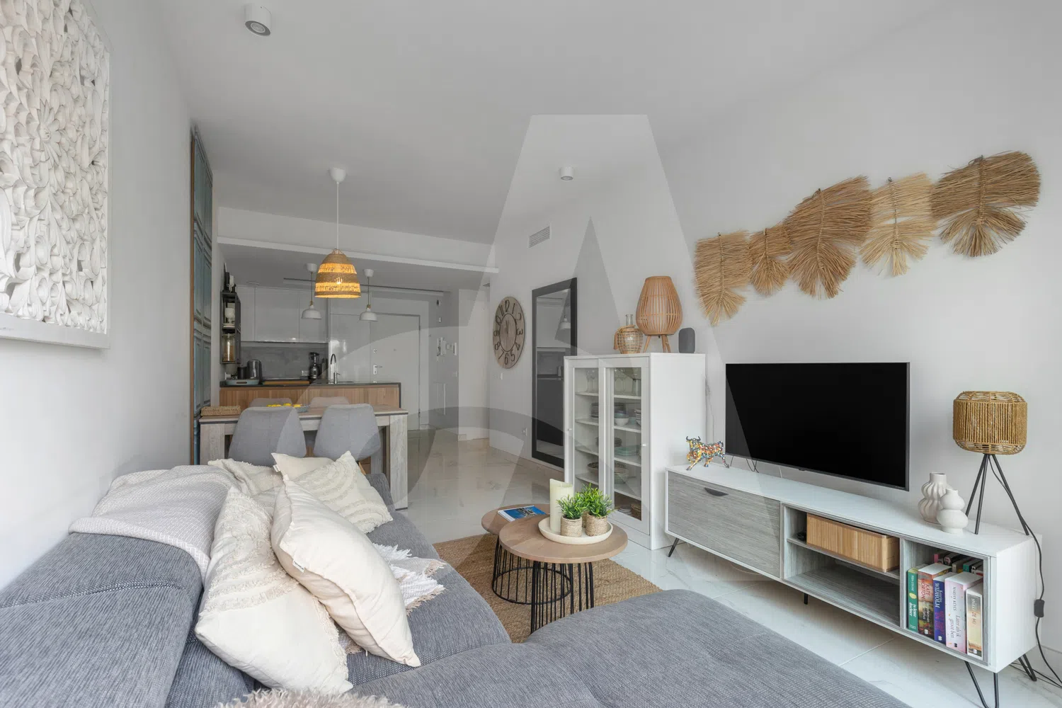 • Acogedor salón de estilo ibicenco con cocina abierta, totalmente equipada con: