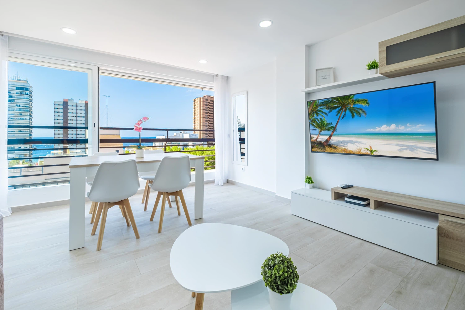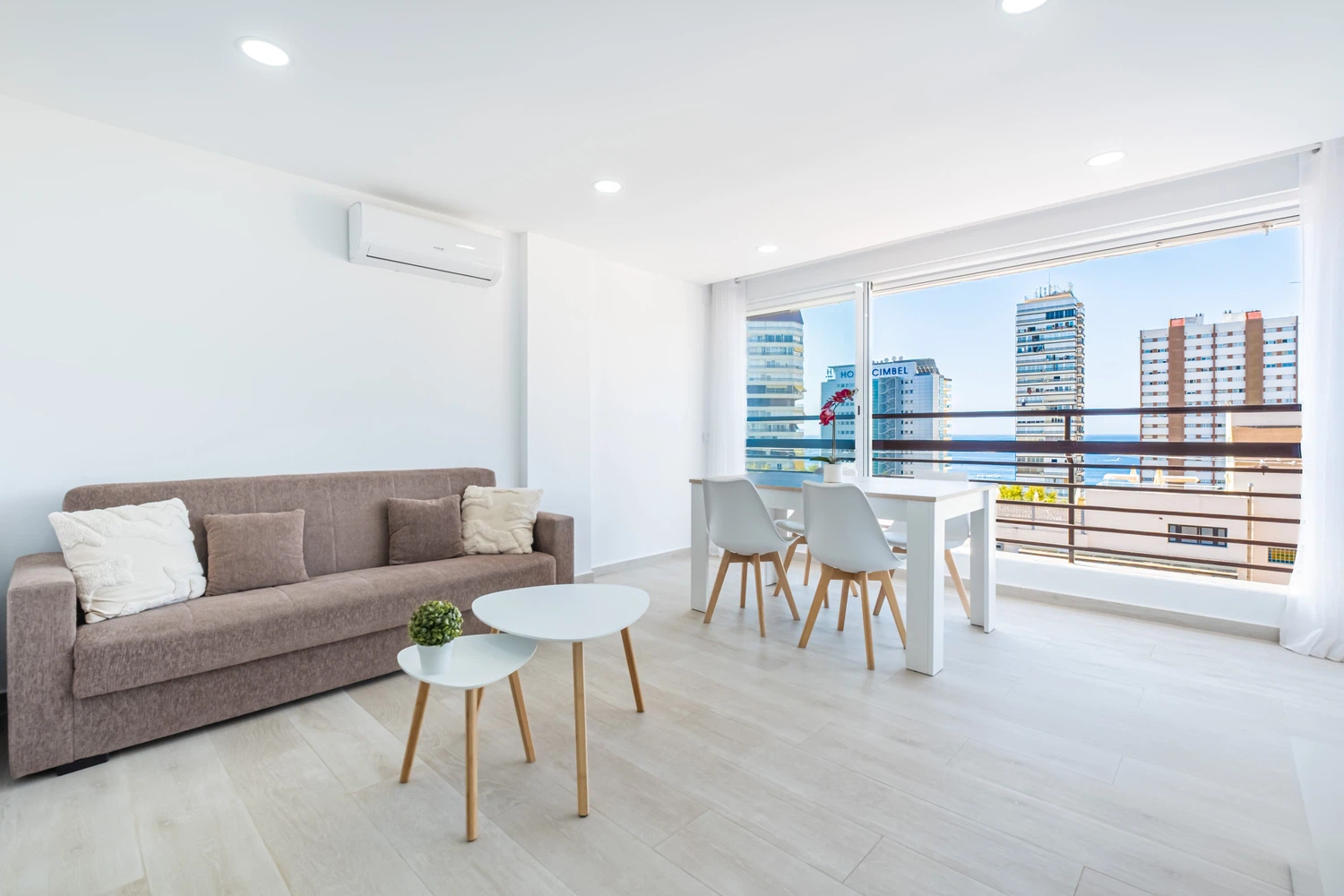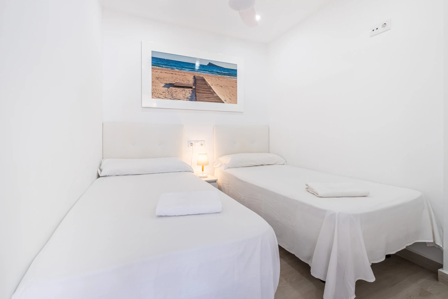 Apartamento reformadoa 150 metros de la playa Levante, en Benidorm. Posee 1 dormitorio, 1 cuarto de baño completo con ducha y secador de pelo. Tiene capacidad para 4 personas.