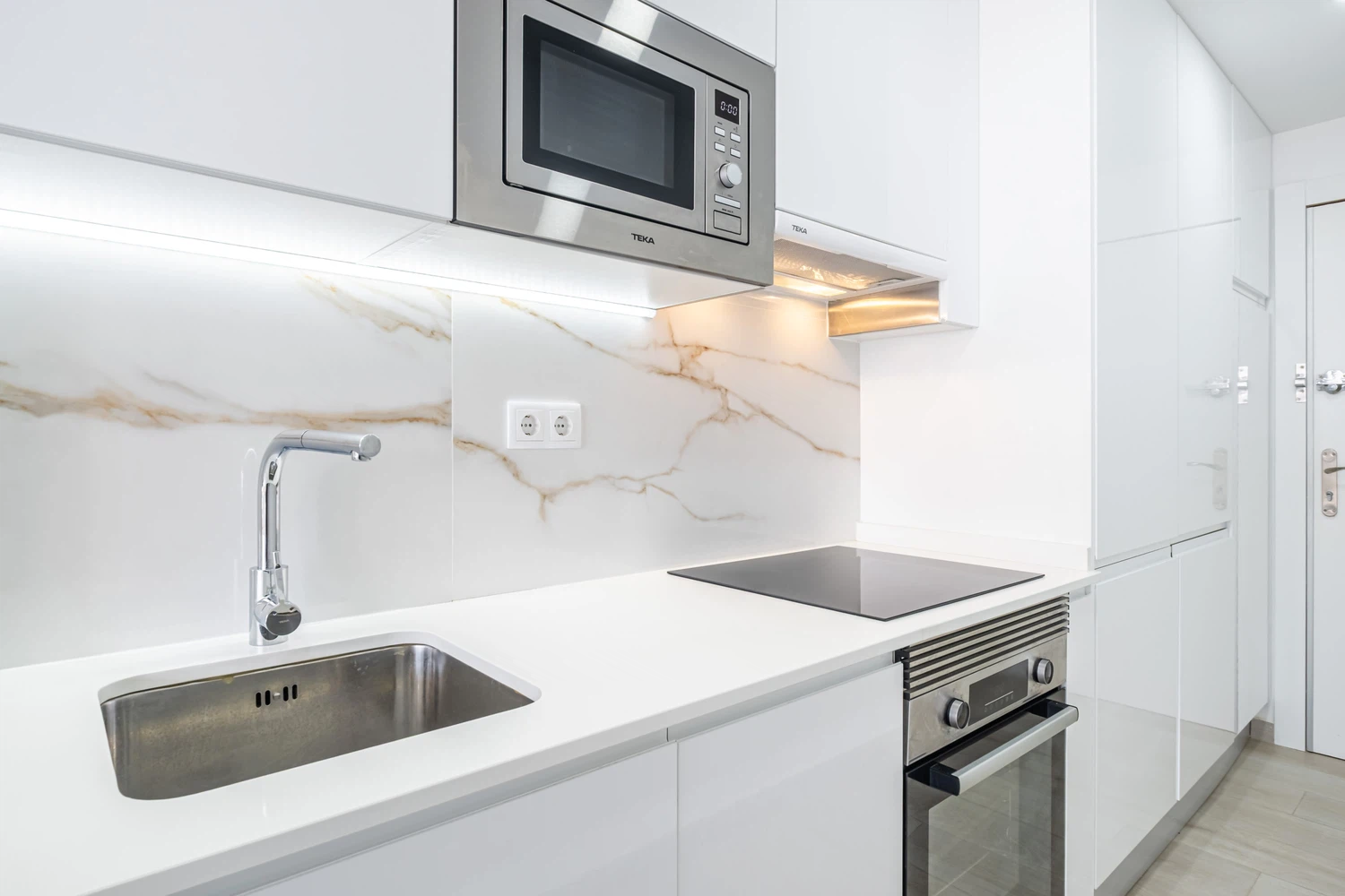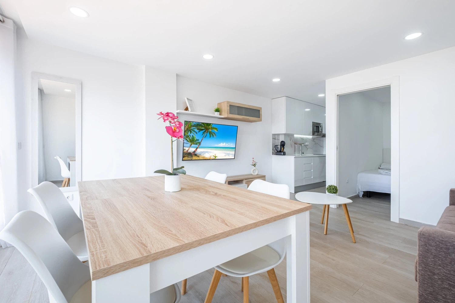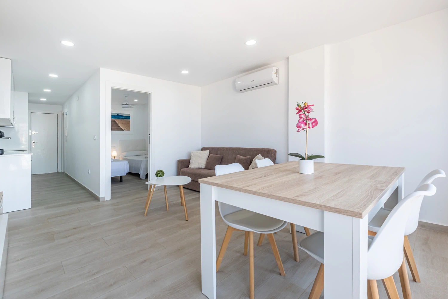 Dispone de ascensor, acceso a internet de alta velocidad por fibra (wifi), aire acondicionado, calefacción bomba de calor, piscina comunitaria+infantil, jardín, parking comunitario y techado sujeto a disponibilidad a la llegada, 1 ventilador de techo en dormitorio, 1 Televisor Smart TV, plancha.