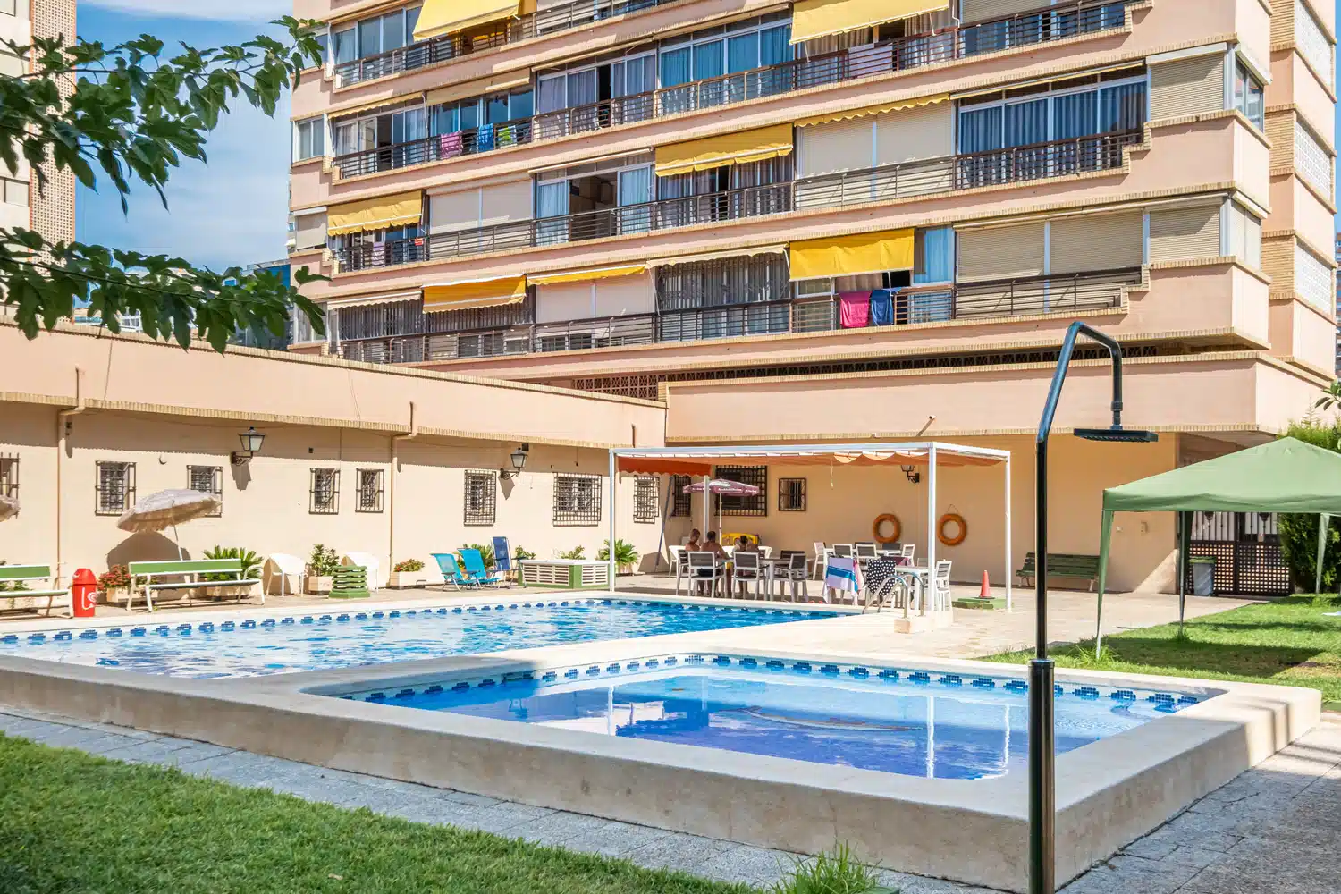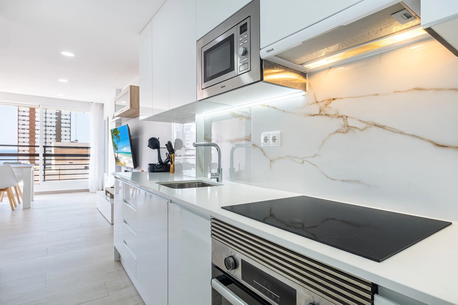 Se encuentra a 150 m de la playa de arena "Playa de Levante", 700 m de la ciudad "Casco Antiguo / Old Town", 900 m de la playa de arena "Playa del Mal Pas", 1 km de la playa de arena "Playa de Poniente", 50 m de la estación de autobuses "Parada Local", 50 m de la cafetería, 100 m del restaurante, 300 m del supermercado "Consum Mediterráneo", 700 m del parque "Parque de L'Aigüera", 1 km del supermercado "Mercadona", 1 km a las termas "Benicaldea Spa", 1 km del hospital "Hospital Clínica Benidorm", 1 km del parque "Parque de Elche", 2 km del hospital "Hospital IMED Levante", 2 km de la pista de esquí "Cable Ski acuático", 2 km de la estación de autobuses "La Estación Benidorm", 2 km de la estación de tren "Tram Benidorm", 2 km de la playa de roca "Cala del Tio Ximo", 3 km del campo de Golf "Las Rejas Golf", 3 km del parque acuático "Aqualandia", 5 km del parque acuático "Aqua Natura", 5 km del campo de Golf "Villaitana Golf", 6 km del parque de atracciones "Terra Mítica", 8 km del parque natural "Serra Gelada", 15 km del parque natural "Puig Campana", 15 km del lago "Pantano La Vila", 15 km del lago "Pantano Guadalest", 20 km del rio "El Algar (Fuentes del Algar)", 45 km de la estación de tren "Renfe Terminal de Alicante", 55 km del aeropuerto "El Altet Alicante", 145 km del aeropuerto "Manises Valencia" y está ubicado en una zona bien comunicada y junto al mar.