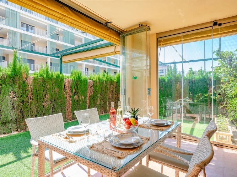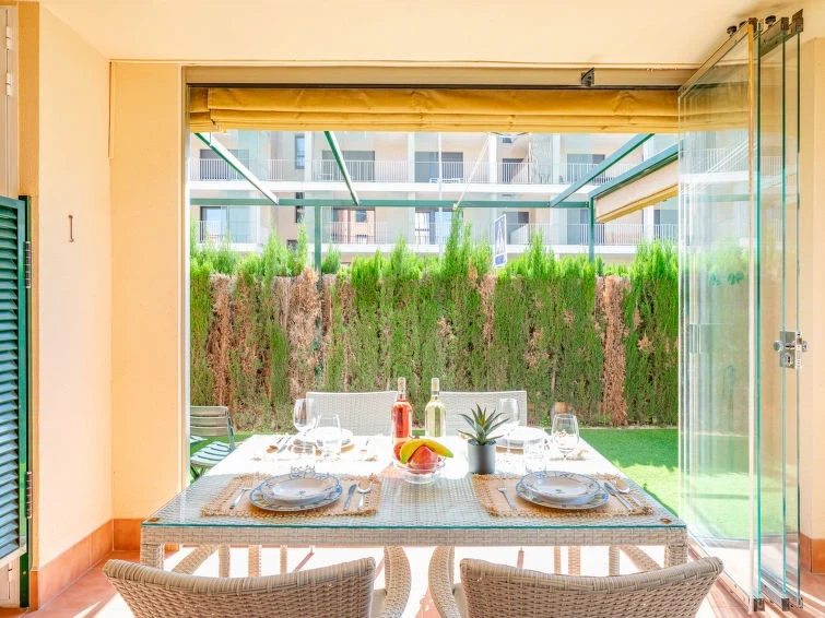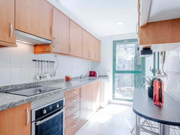 "La Darsena", apartamento de 3 estancias 70 m2. Espacioso, con mobiliario confortable y de estilo: salón-comedor con TV digital. Salida pérgola, a la terraza-jardín. 1 dorm. con 1 cama de matrimonio (150 cm, 200 cm de longitud), baño/WC, TV digital, aire acondicionado y bomba de calor, caliente. 1 dorm. con 2 camas (90 cm, 200 cm de longitud), aire acondicionado y bomba de calor, caliente. Cocina (horno, lavavajillas, 3 placas de vitrocerámica, tostadora, hervidor de agua eléctrico, microondas, congelador, cafetera eléctrica). Salida a la terraza. Ducha/WC. Terraza grande 80 m2. Muebles de terraza. El alojamiento dispone de: lavadora, plancha, secador de pelo. Internet (Wifi, gratis). Garaje n. 28. A tener en cuenta: TV solamente ES. R00000001
