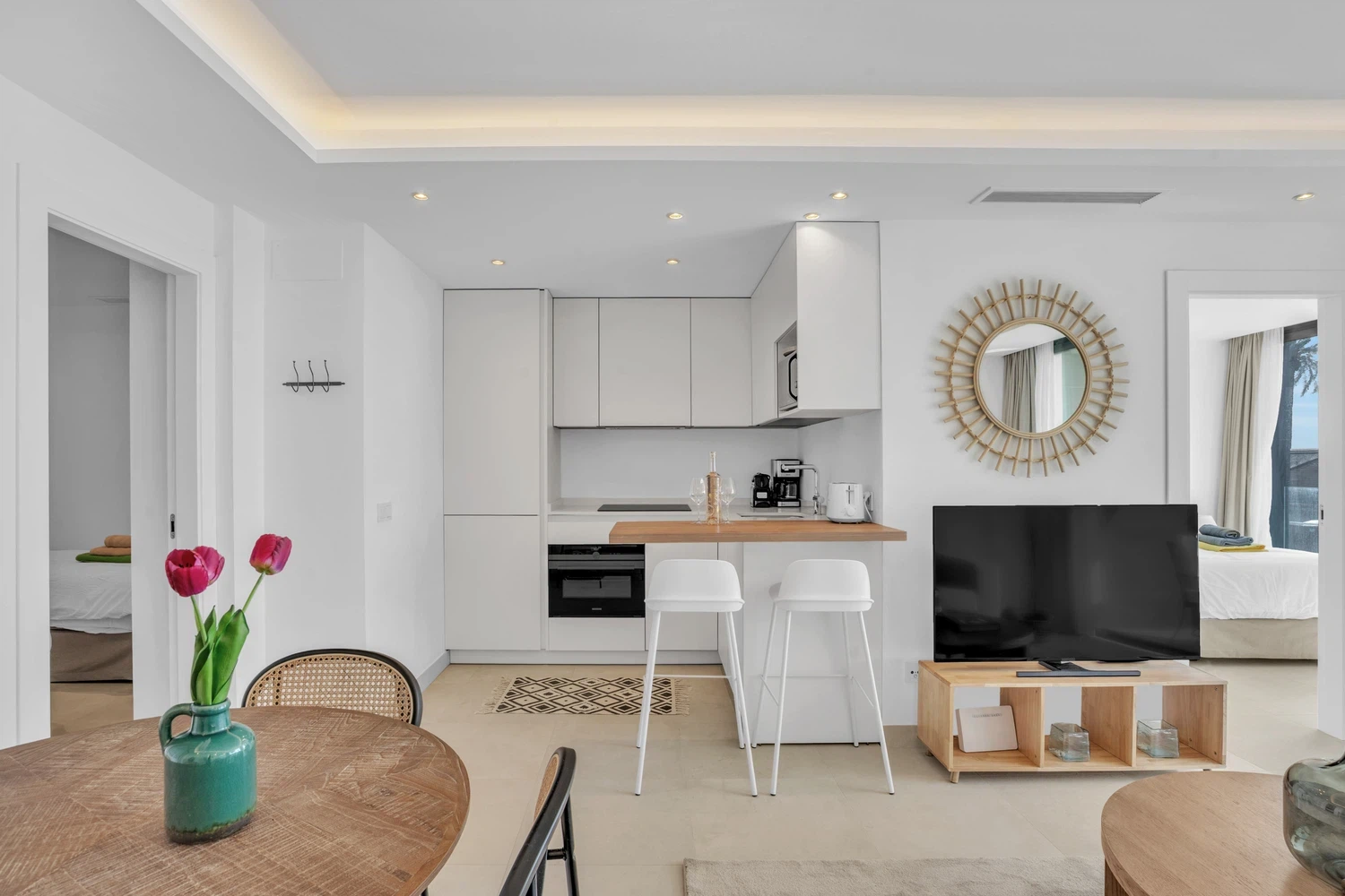 Tenga en cuenta: El apartamento está ubicado en una zona céntrica y vibrante de Estepona, a solo pasos de la playa y del casco antiguo. Aunque esta ubicación privilegiada ofrece un acceso inmejorable a atracciones locales, tiendas y restaurantes, puede ser animada por la noche, especialmente durante los fines de semana o días festivos.