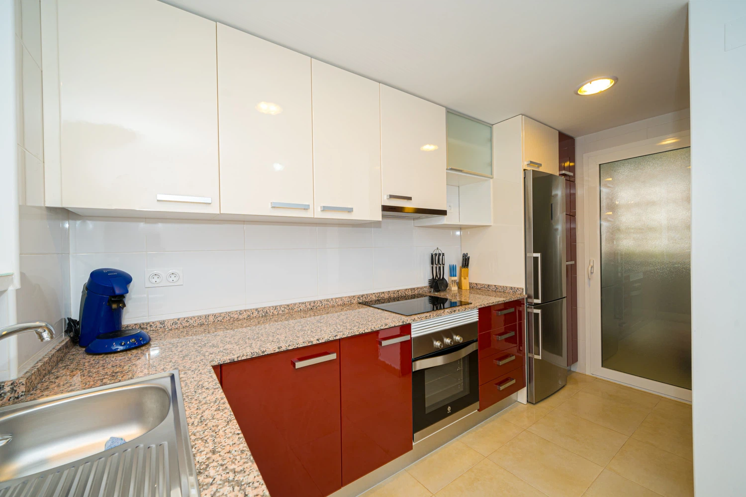 La cocina americana, de vitrocerámica, está equipada con nevera, microondas, horno, congelador, lavavajillas, vajilla/cubertería, utensilios/cocina, cafetera, tostadora y hervidor de agua.
