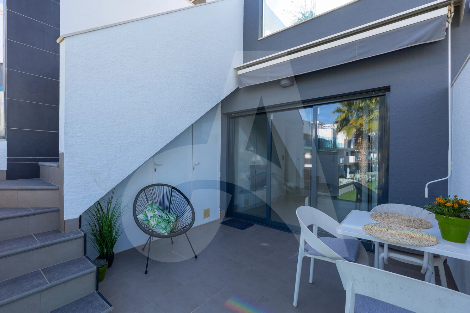 🌴 Balcón amueblado con vistas a la piscina y al jardín