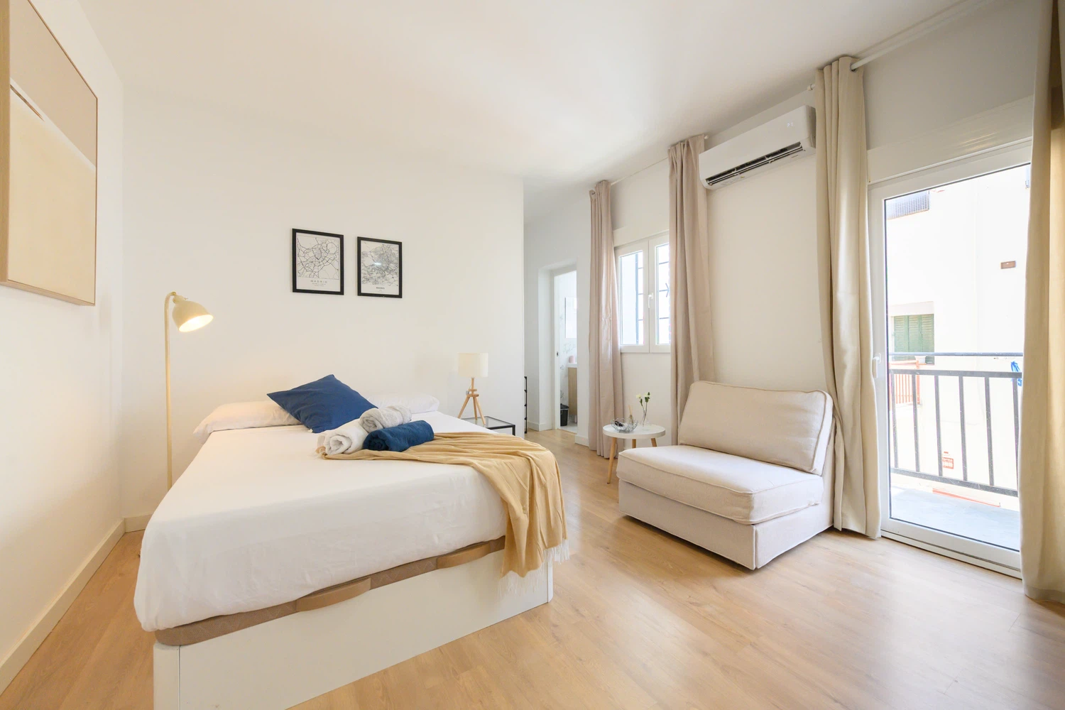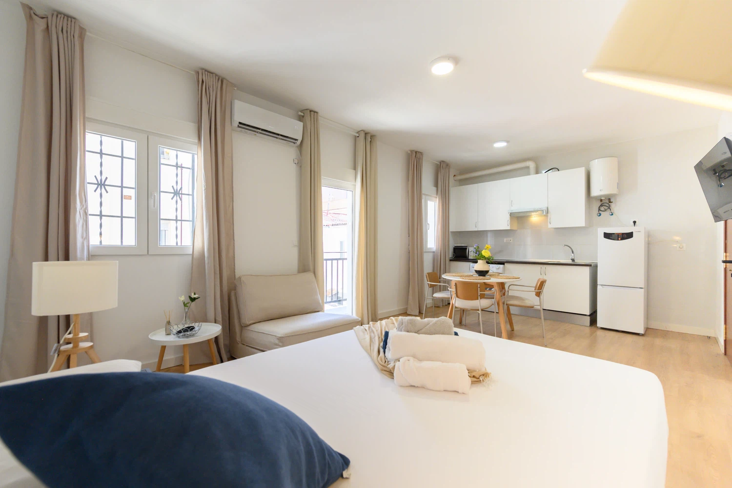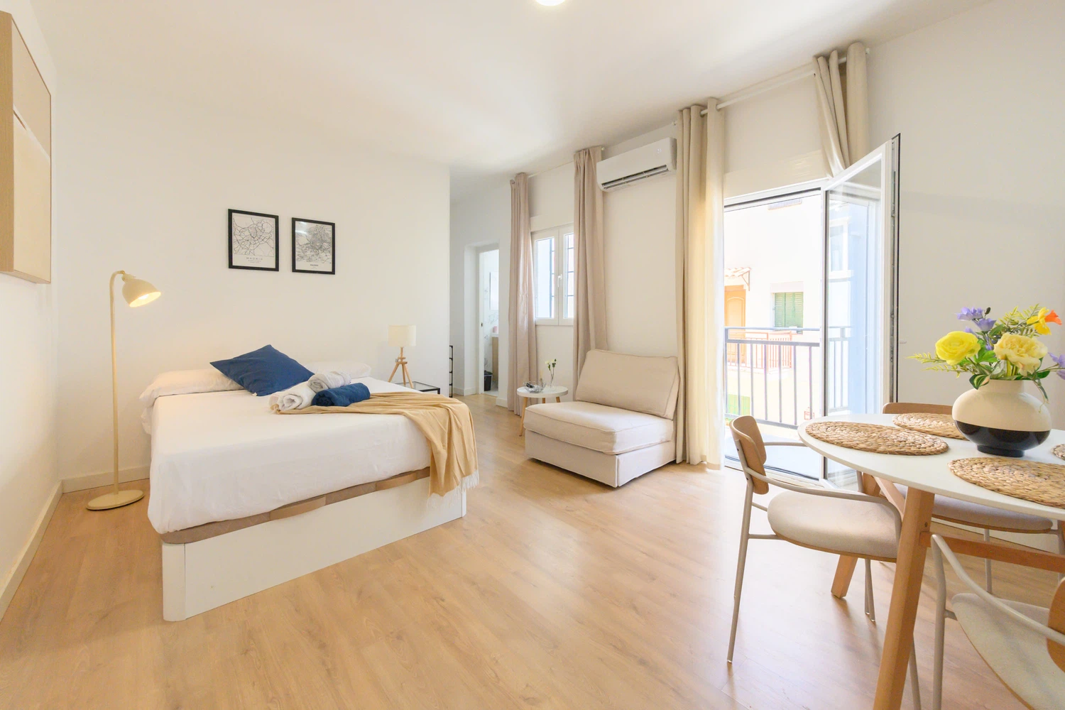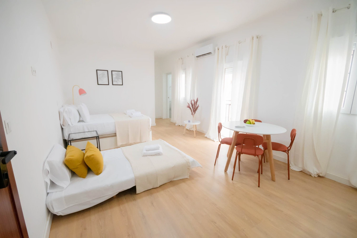 Este apartamento tipo estudio está recién reformado ha sido decorado con estilo y elegancia. Dispone de una cama de matrimonio y un sofá cama individual, así como una cocina con todo el equipamiento necesario para que tu estancia sea cómoda. Cuenta además con un baño con plato de ducha