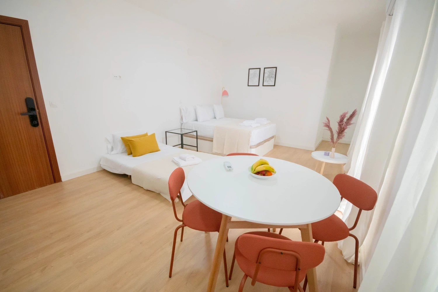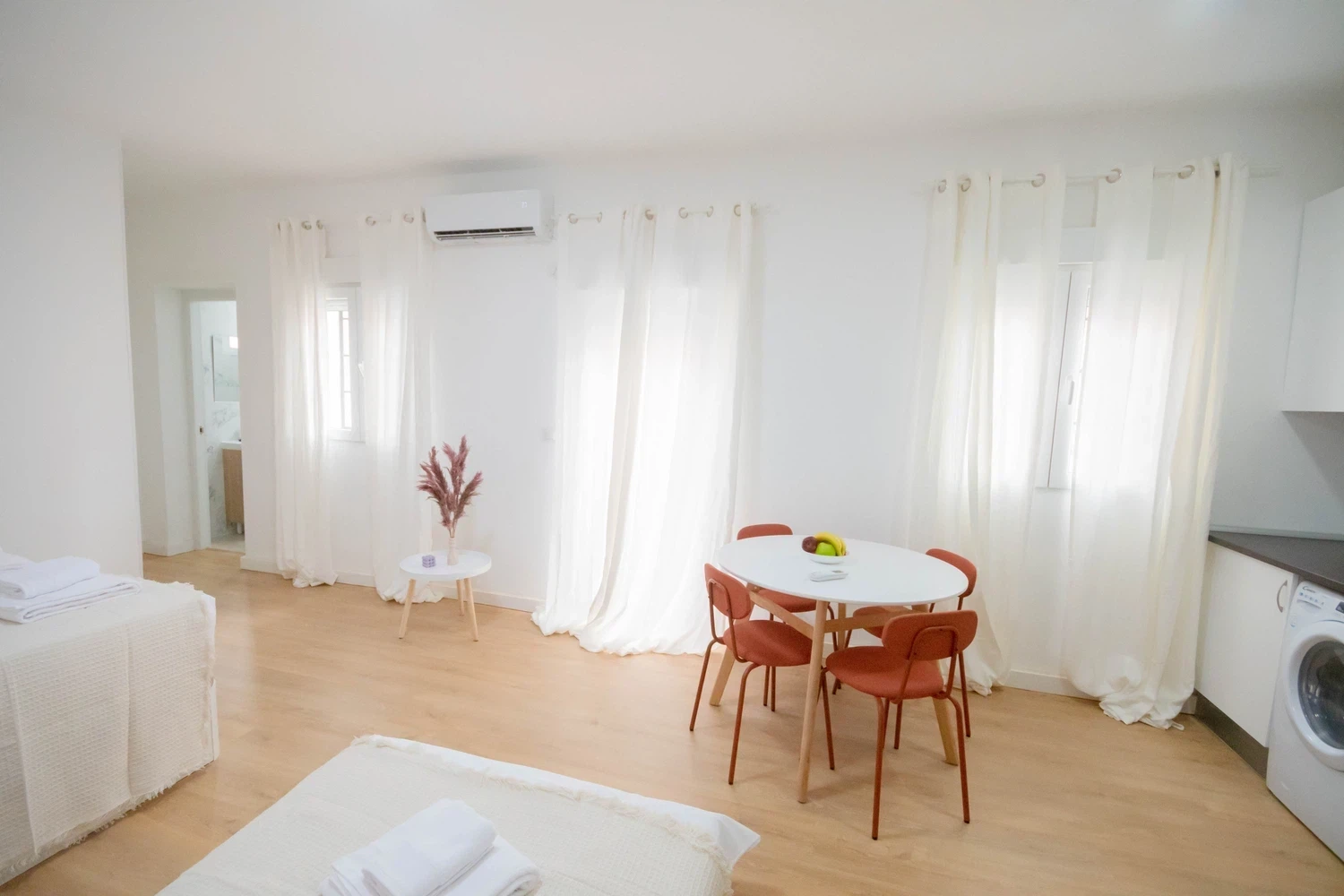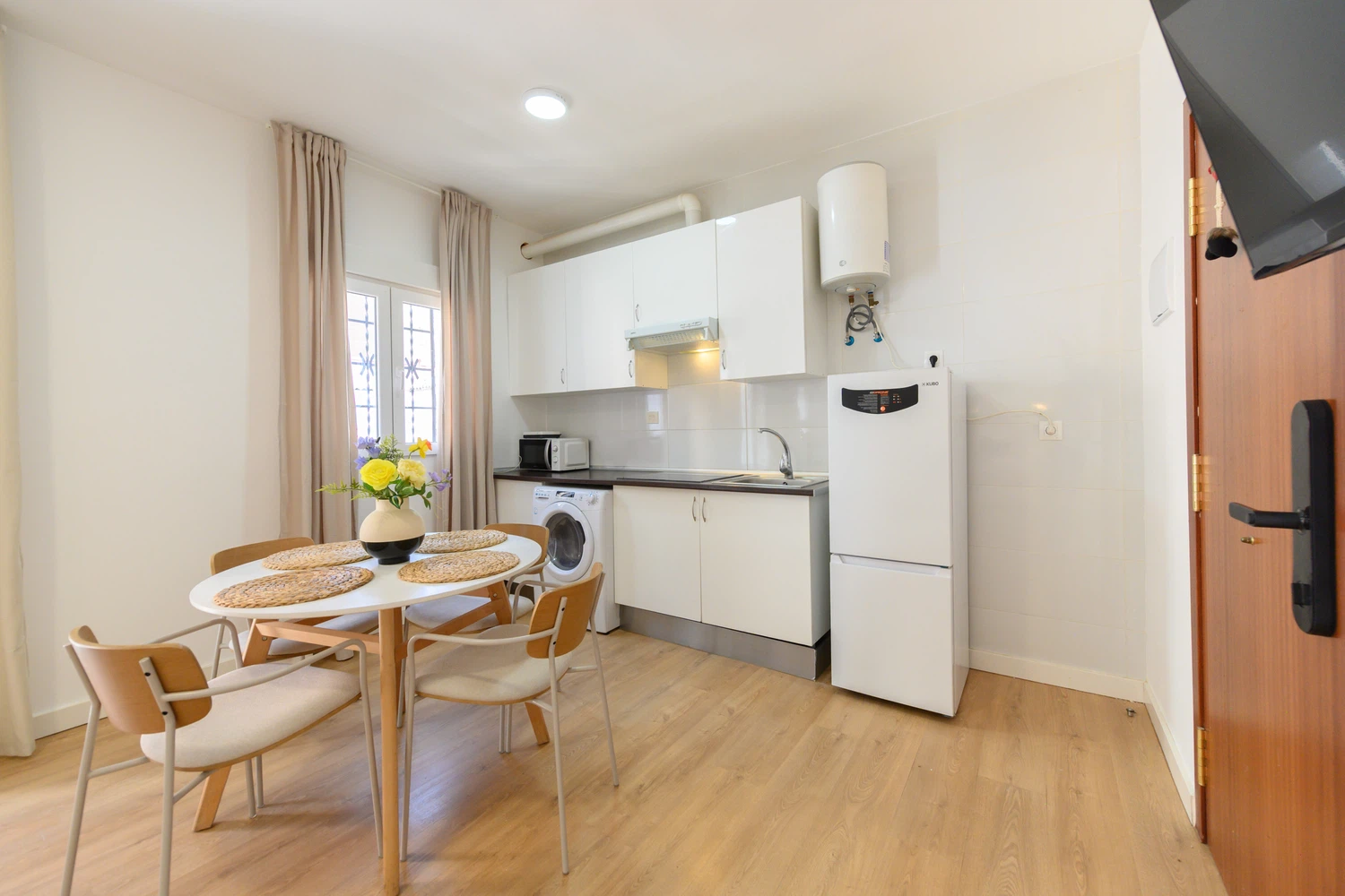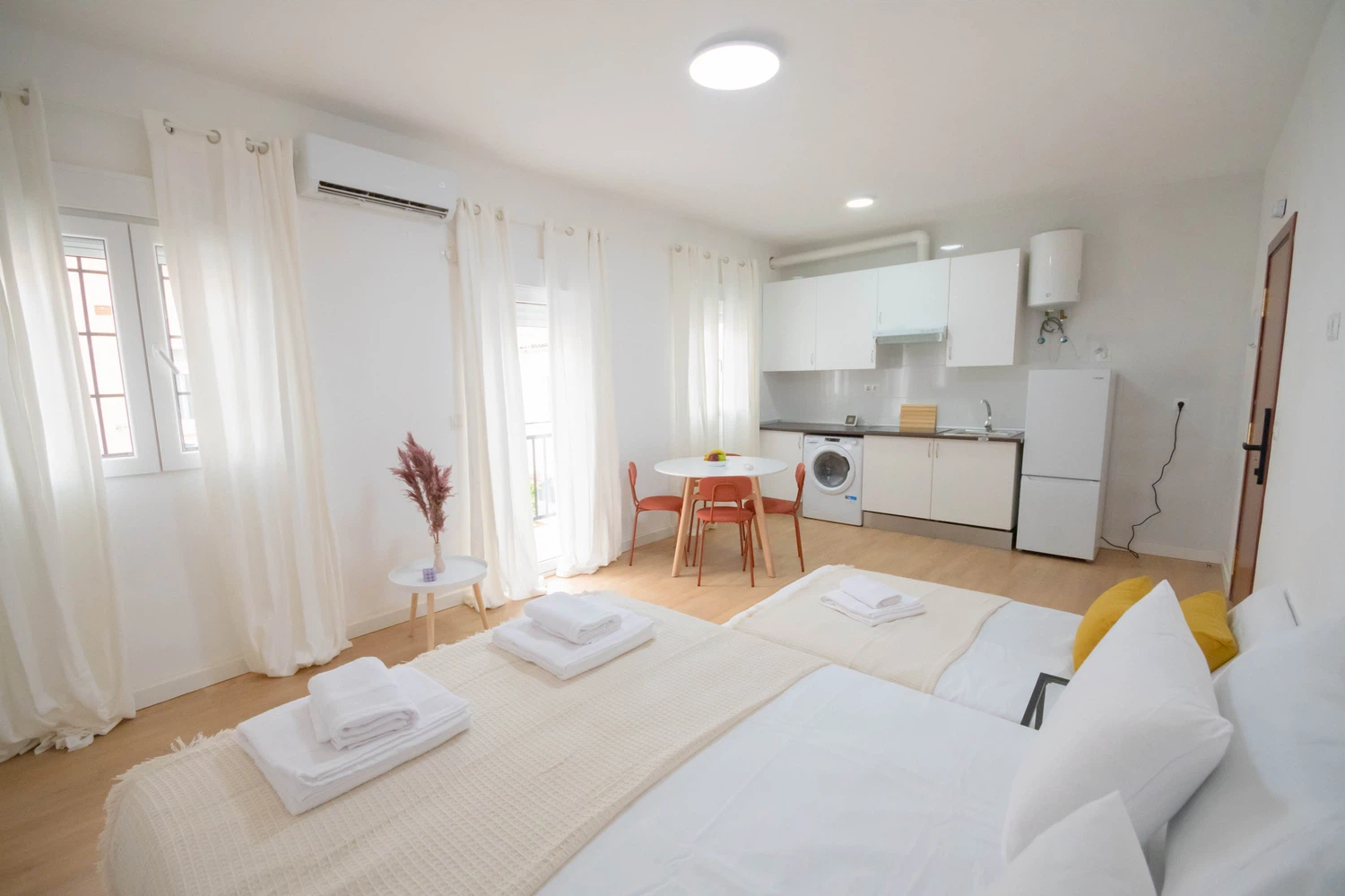 Este apartamento tipo estudio está recién reformado ha sido decorado con estilo y elegancia. Dispone de una cama de matrimonio y un sofá cama individual, así como una cocina con todo el equipamiento necesario para que tu estancia sea cómoda. Cuenta además con un baño con plato de ducha