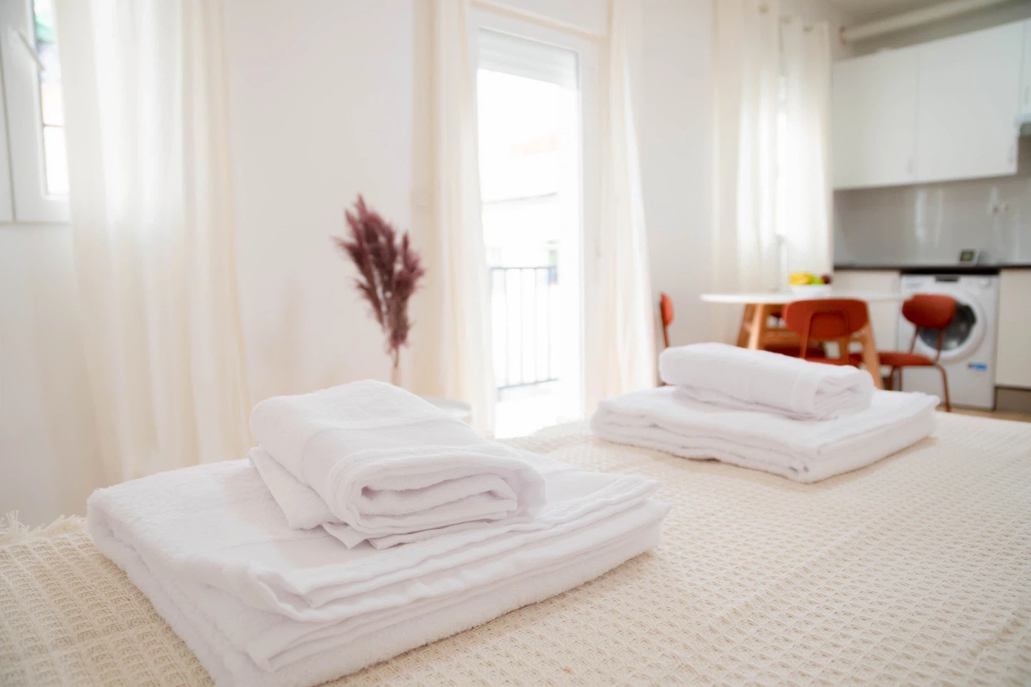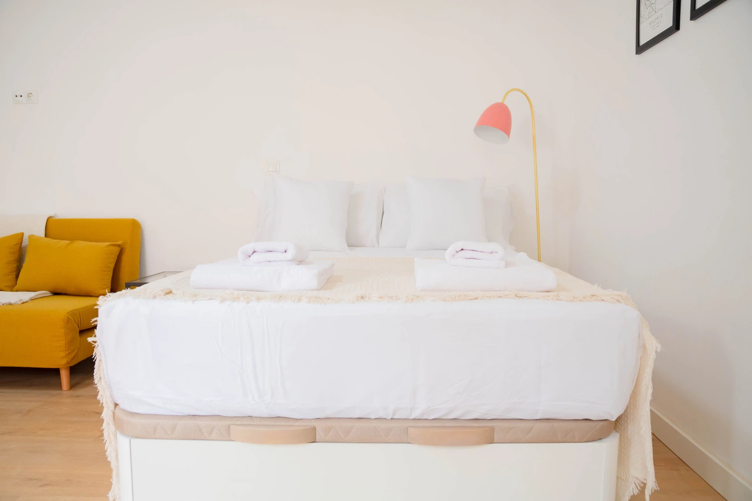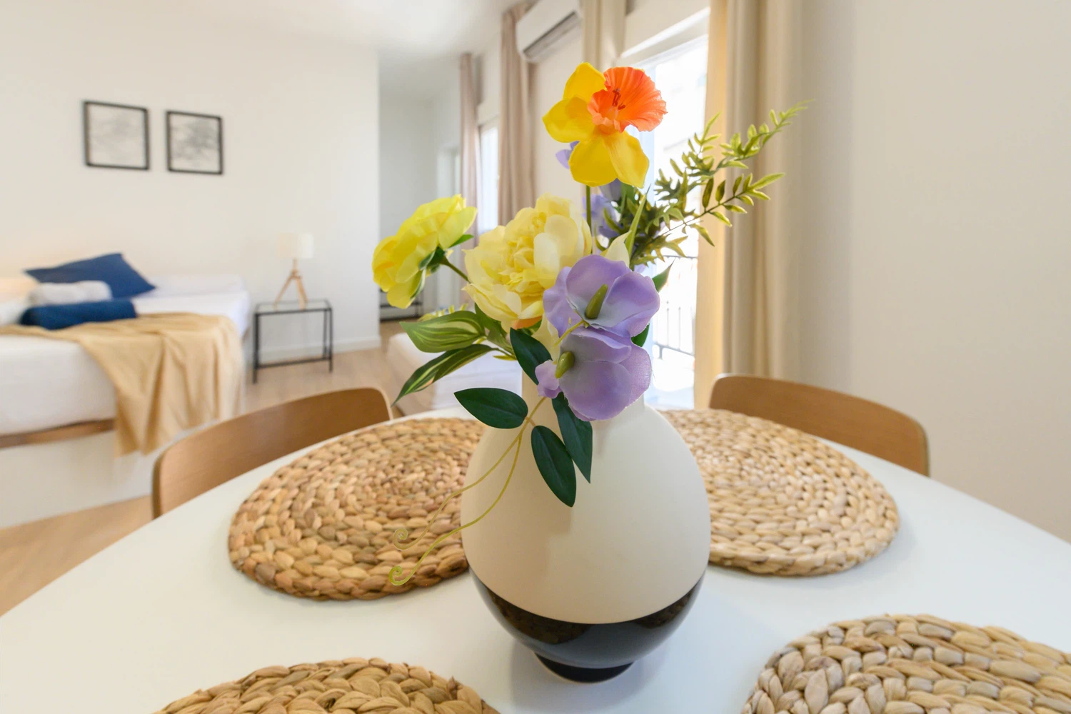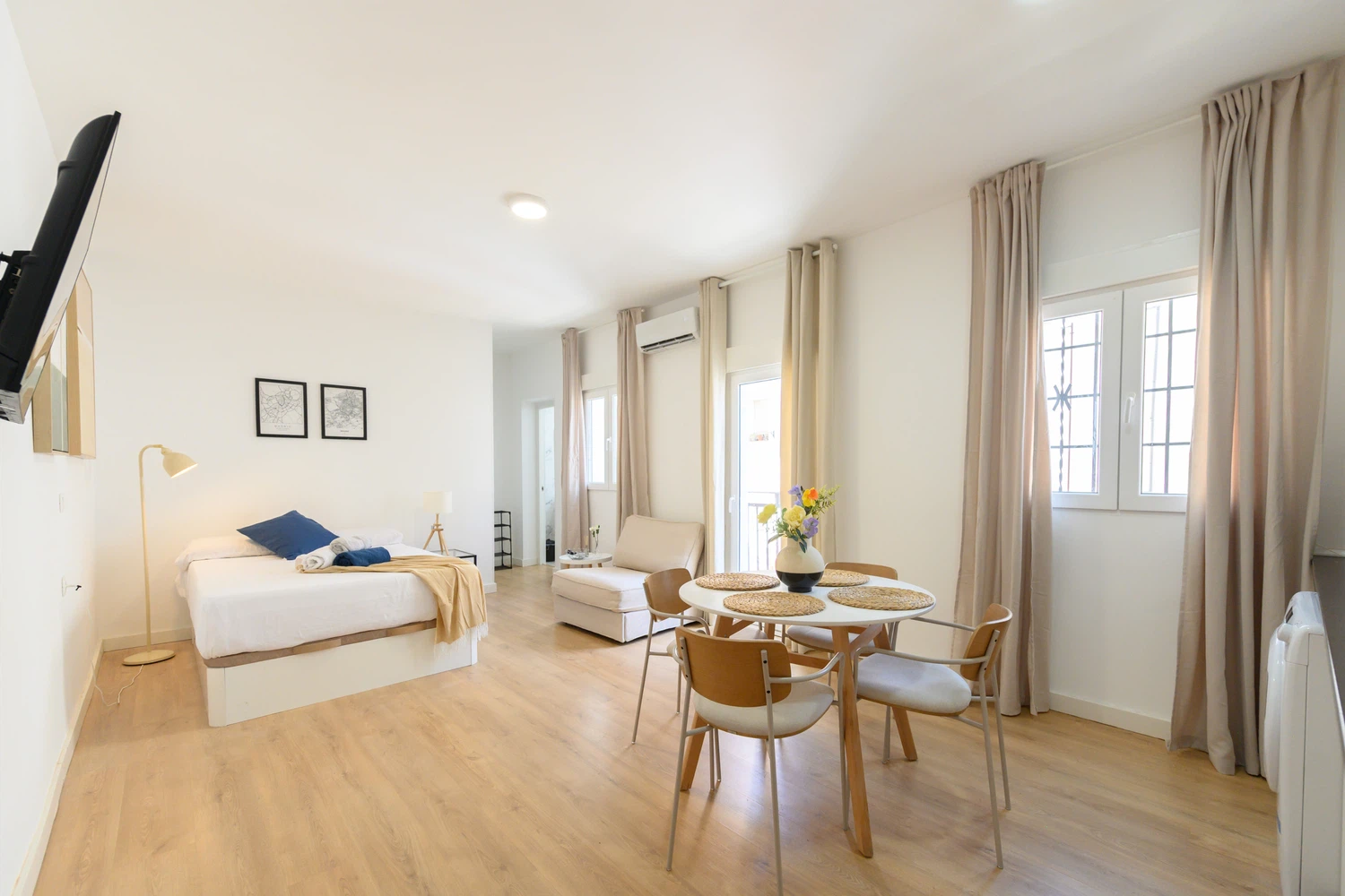 Este apartamento tipo estudio está recién reformado ha sido decorado con estilo y elegancia. Dispone de una cama de matrimonio y un sofá cama individual, así como una cocina con todo el equipamiento necesario para que tu estancia sea cómoda. Cuenta además con un baño con plato de ducha