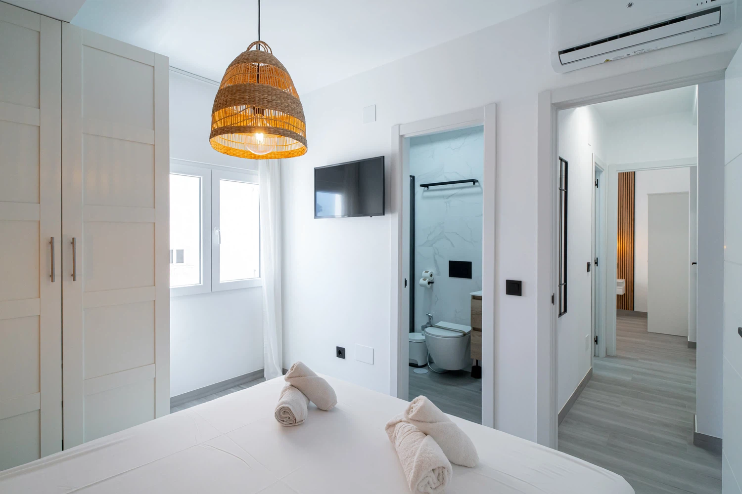 Situado en el auténtico barrio de Las Flores, una zona tranquila sin gran afluencia turística, rodeado de familias locales. A pocos pasos se encuentra la animada zona del Parador, con una gran variedad de restaurantes populares, como el legendario Bar/Restaurante La Puntilla o El Velero, famoso por sus tapas. A solo 4 minutos a pie se encuentra la cafetería Rincón de Encarni, punto de encuentro de turistas y lugareños.