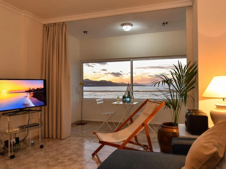 "LZ84H Lanzarote", apartamento de 2 estancias 70 m2 en el 4° piso. Con mobiliario agradable: salón-comedor con mesa de comedor y TV digital. 1 dorm. con 2 camas. Cocina (horno, lavavajillas, 3 placas de vitrocerámica, tostadora, hervidor de agua eléctrico, microondas, congelador, cafetera eléctrica) con mesa de comedor. Ducha/bidet/WC. Vista al mar y al paisaje. El alojamiento dispone de: lavadora, caja fuerte, plancha, trona, cuna hasta 2 años, secador de pelo. Internet (Wifi, gratis). Garaje (1 coche). A tener en cuenta: apartamento para no fumadores. 2016/1473