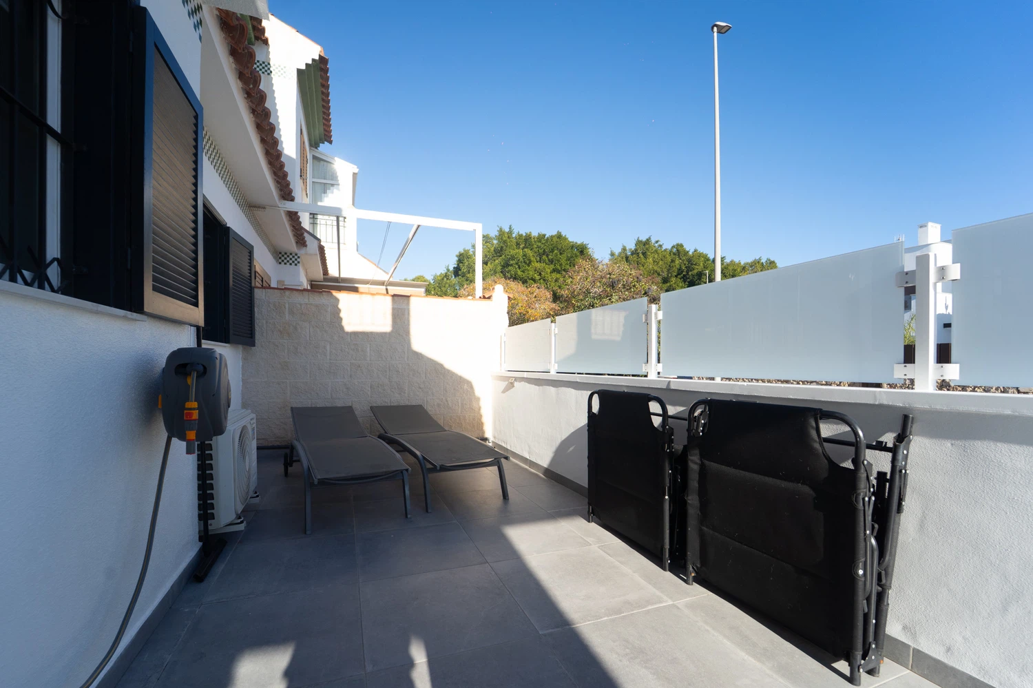 El apartamento de vacaciones tiene 2 dormitorios y 1 cuarto de baño. El alojamiento ofrece mucha privacidad, un bonito jardín privado con césped y árboles y un jardín comunitario con césped y árboles. El confort y la cercanía de la playa, sitios para salir y lugares para ir de compras hacen de este apartamento un alojamiento ideal para pasar sus vacaciones en España con su familia, sus amigos y sus mascotas.