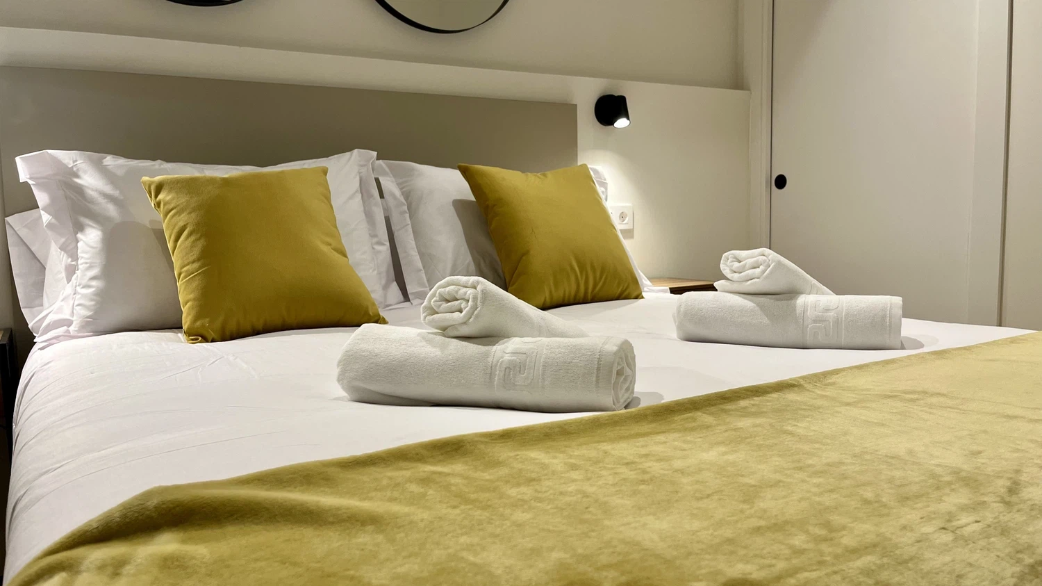 El espacio Este estudio single-space ha sido diseñado pensando en la luz y la amplitud, ofreciendo un gran confort en un formato diáfano para dos personas.