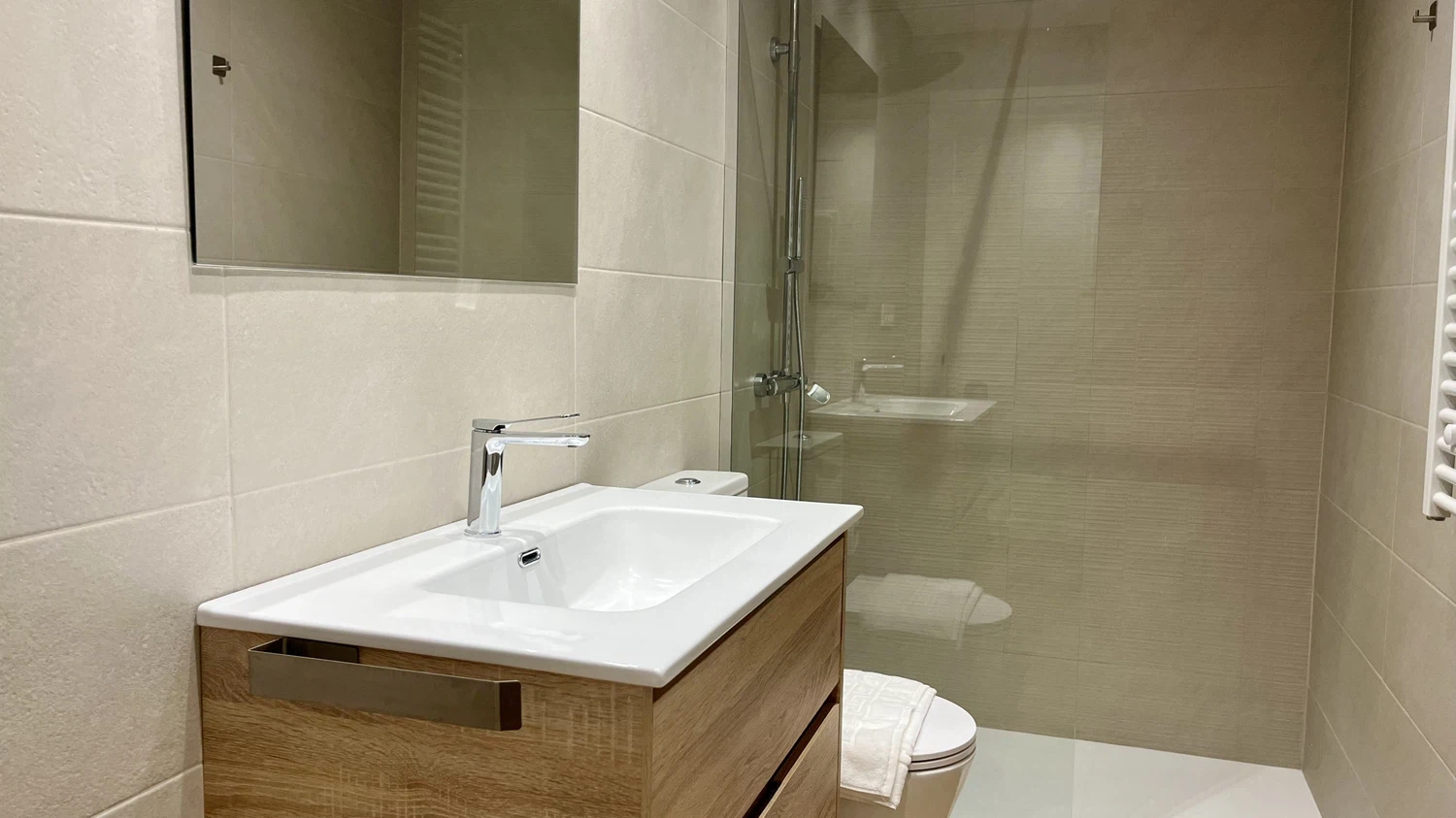 Baño Completo: Un baño moderno y funcional con una amplia ducha.