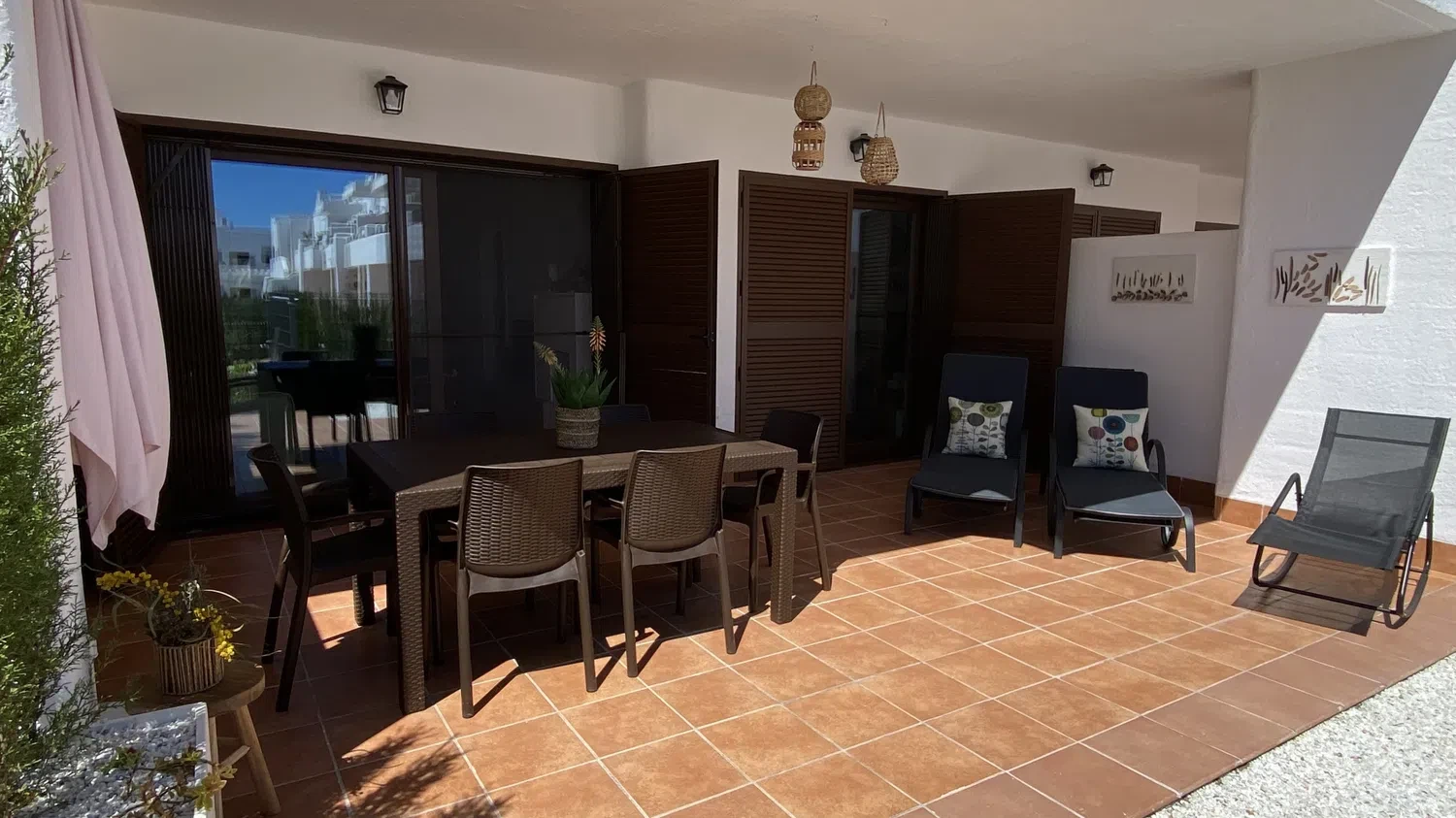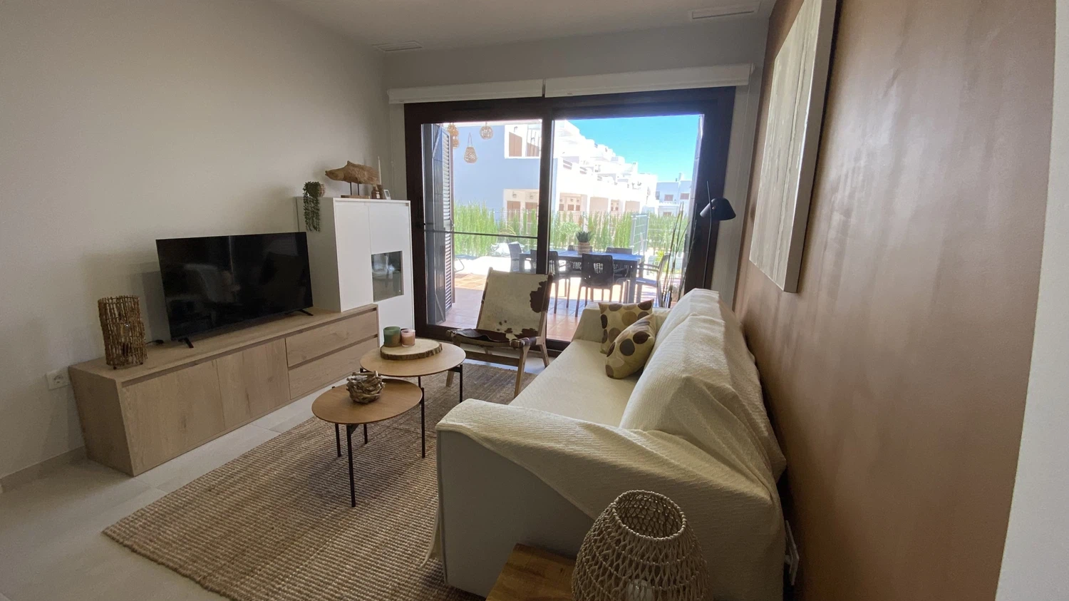 El apartamento en San Juan de los terreros posee 2 dormitorio(s) y capacidad para 5 personas. Alojamiento de 75 m² amueblado con gusto y de recién construcción. Se encuentra a 200 m de la playa de arena, 250 m del supermercado, 300 m del restaurante, 1 km de la ciudad "San Juan de los Terreros", 8 km del campo de Golf "Aguilon Golf", 90 km del aeropuerto "Almeria", 90 km del aeropuerto "Murcia" y está ubicado en una zona ideal para familias y junto al mar.Dispone de jardín, mobiliario jardín, parcela vallada, 20 m² de terraza, lavadora, plancha, acceso internet (wifi), secador, zona infantil, calefacción central, aire acondicionado en todo el alojamiento, piscina comunitaria, piscina climatizada comunitaria, parking cubierto en mismo edificio, 1 Televisor, tv satelite (Idiomas: Español).La cocina americana, de vitrocerámica, está equipada con nevera, microondas, horno, congelador, lavavajillas, vajilla/cubertería, utensilios/cocina, cafetera, tostadora, hervidor de agua y exprimidor.
