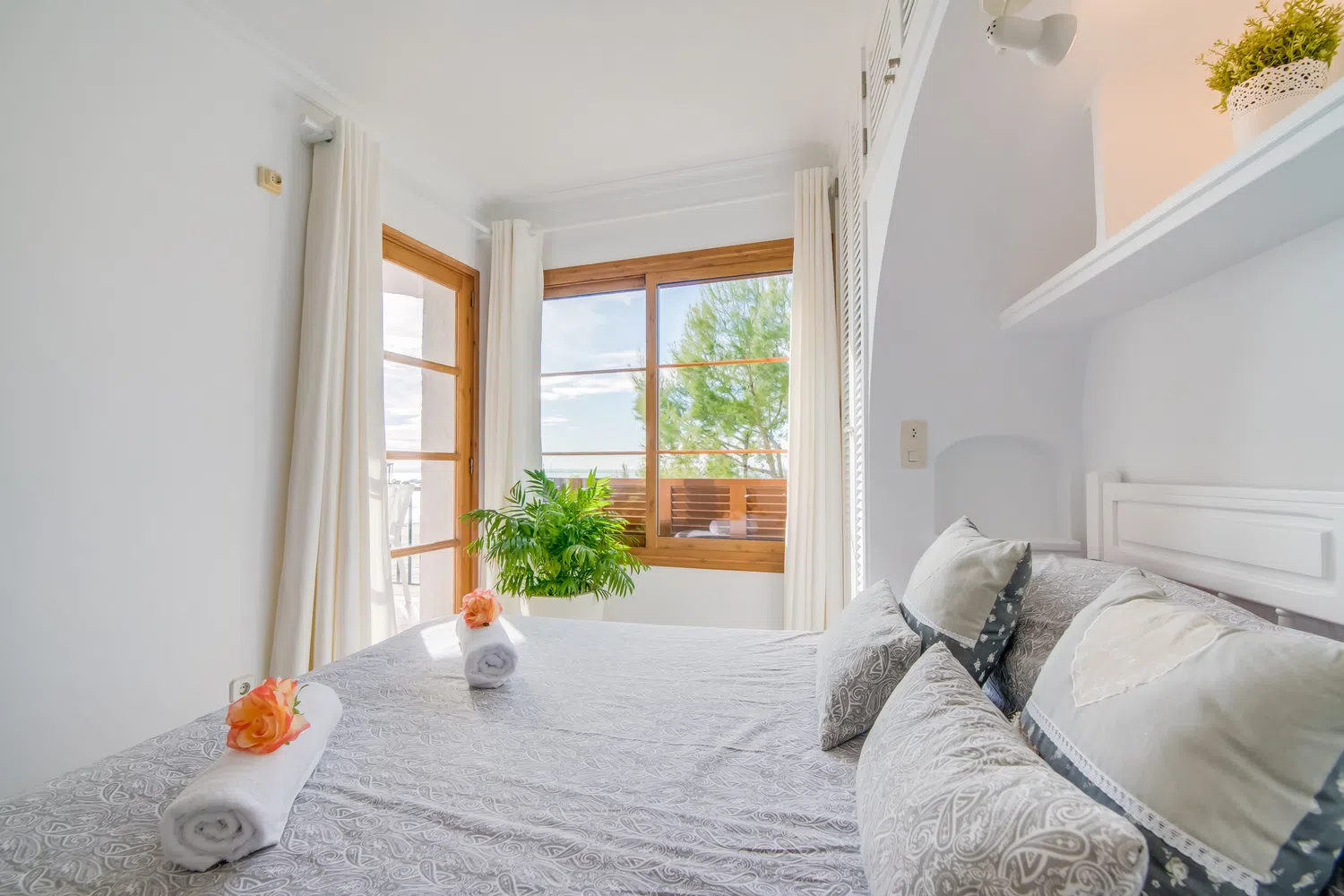 Además, el apartamento dispone de una habitación con cama de matrimonio, vistas al mar y acceso directo a la terraza, un segundo dormitorio con dos camas individuales y un baño con ducha. En el piso encontrarán toallas de playa además de las de baño.
