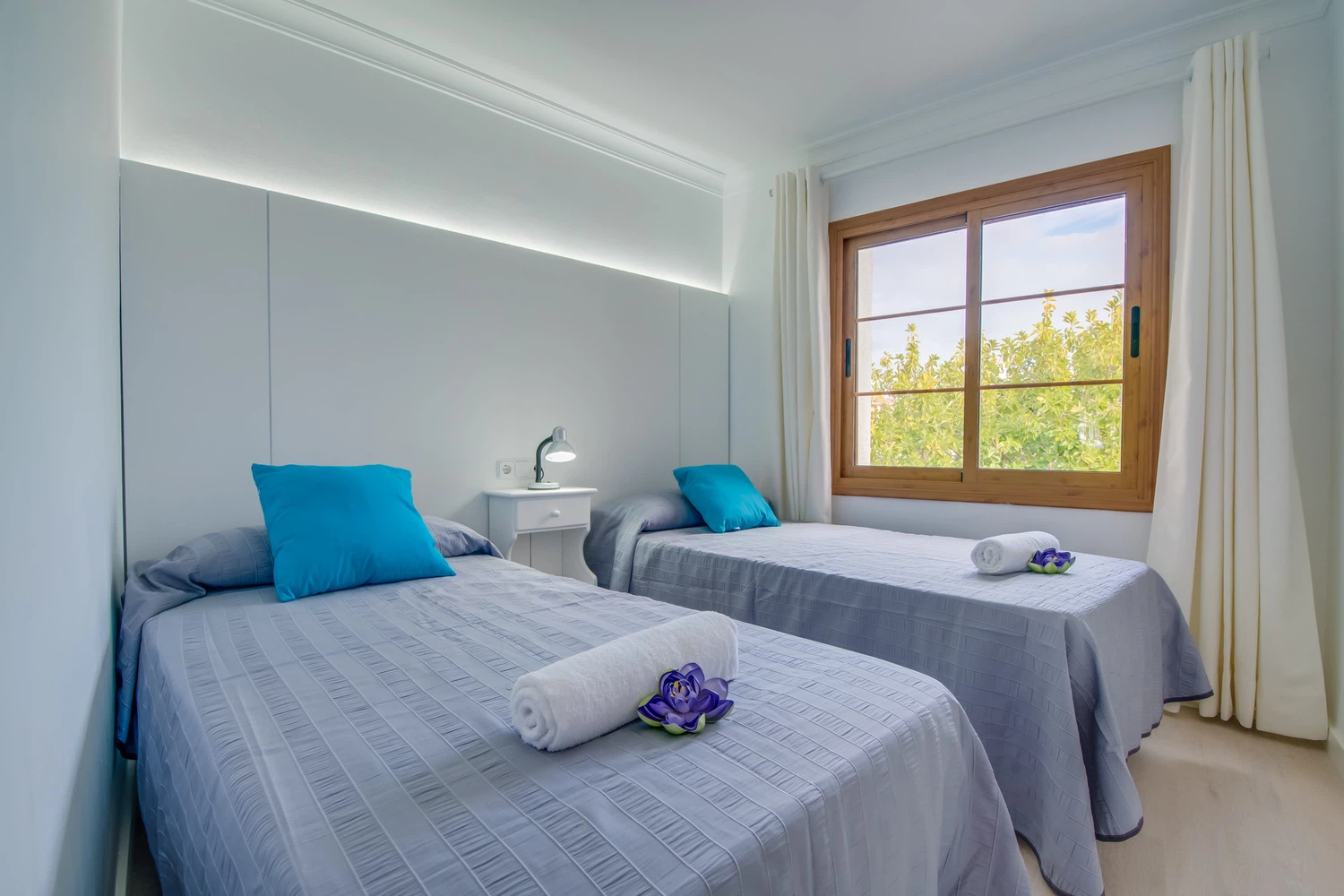La ubicación también es particularmente atractiva: el complejo en sí es tranquilo, pero en las inmediaciones hay tiendas, bares, restaurantes, el paseo marítimo, el puerto e innumerables actividades de ocio (alquiler de bicicletas, excursiones en barco, etc.). Además, la playa y el puerto de Alcudia son regularmente el escenario de eventos deportivos conocidos como el Ironman o diferentes eventos culinarios y culturales. El casco antiguo de Alcudia está a poca distancia a pie y numerosas conexiones de autobús ofrecen más posibilidades de excursiones incluso sin un coche. Un gran punto de partida para todo lo que pueda desear en vacaciones.