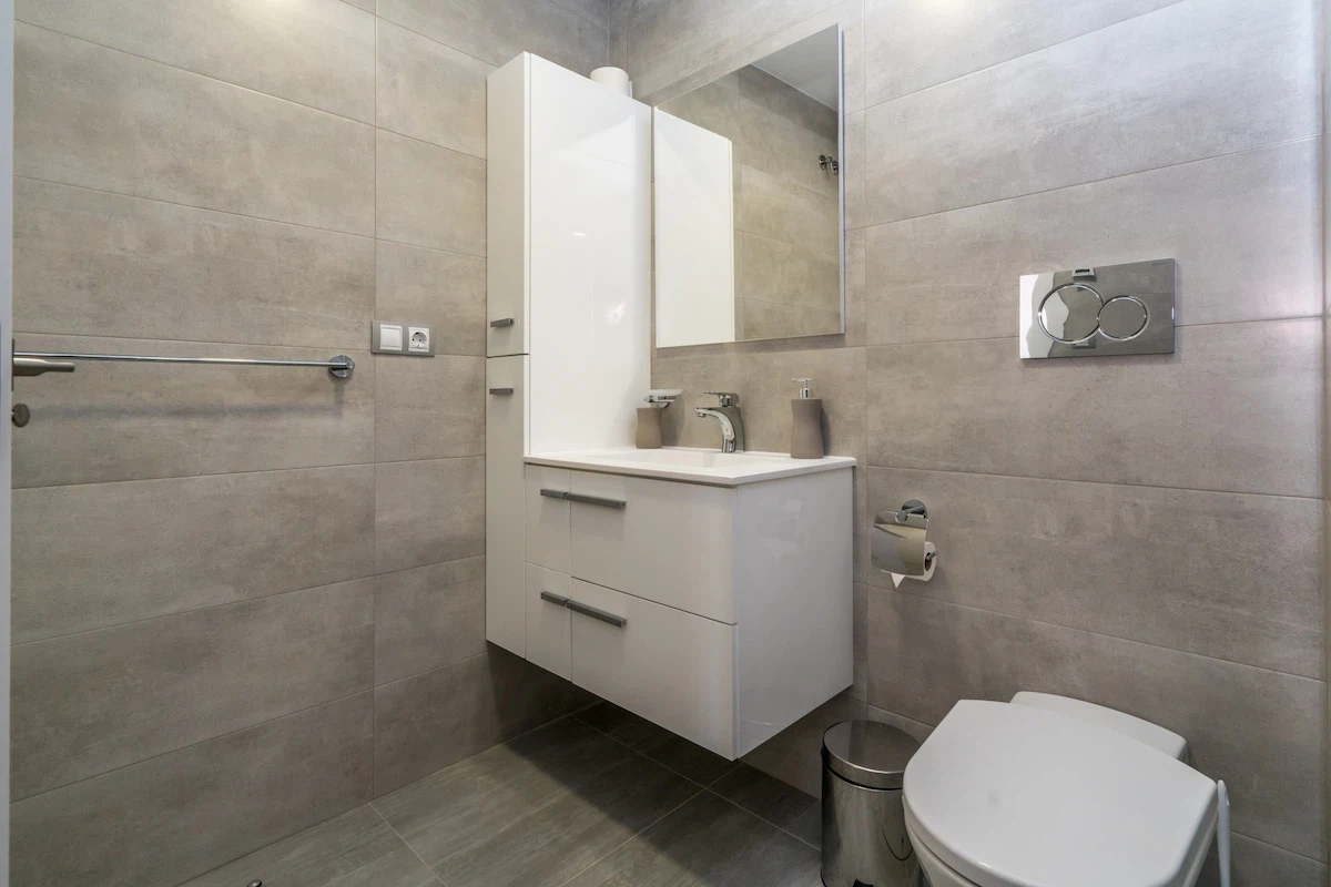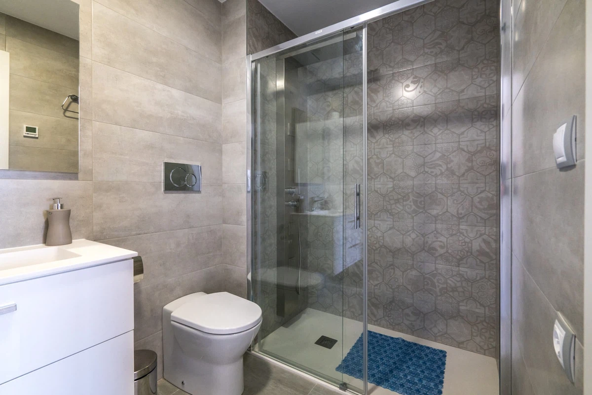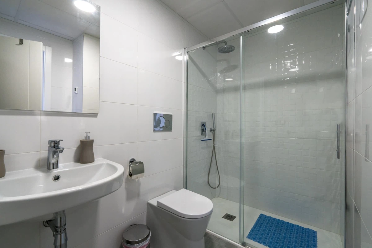 - cuarto de baño con lavabo, ducha y cisterna de inodoro