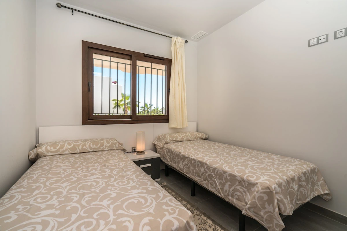 El apartamento de vacaciones tiene 3 dormitorios y 2 cuartos de baño. El alojamiento ofrece privacidad, un bonito jardín privado con césped y árboles, un jardín comunitario con césped y árboles, unas maravillosas vistas al jardín y unas bonitas vistas al mar. El confort y la cercanía de la playa, sitios para salir, actividades deportivas y lugares para ir de compras hacen de este apartamento un alojamiento apropiado para pasar sus vacaciones en España con familia o amigos.
