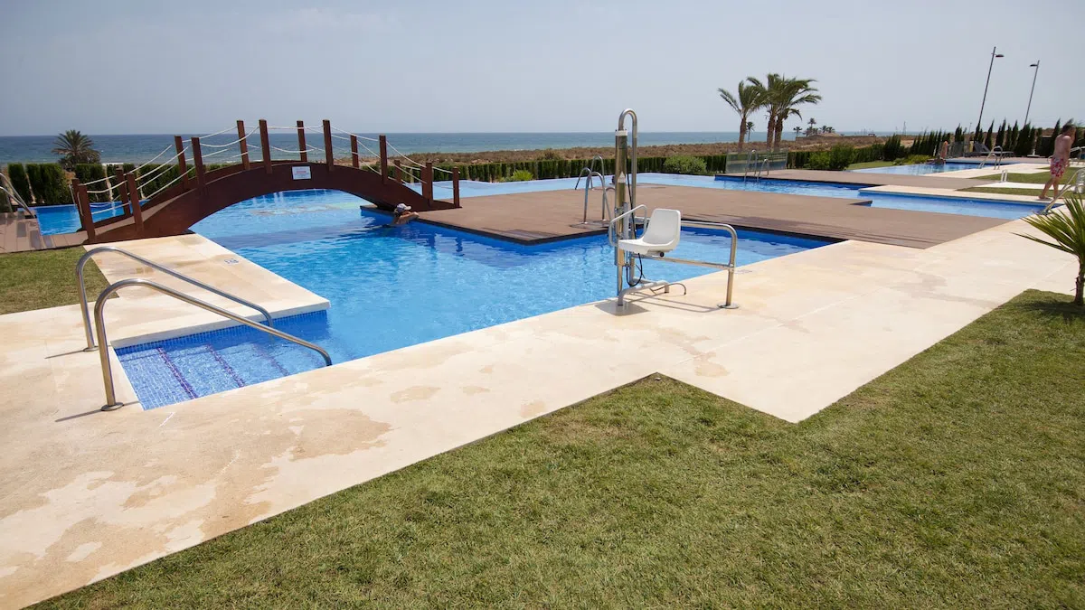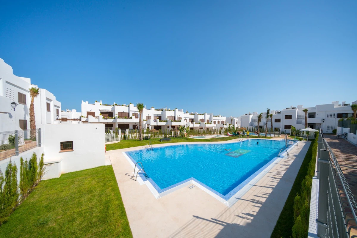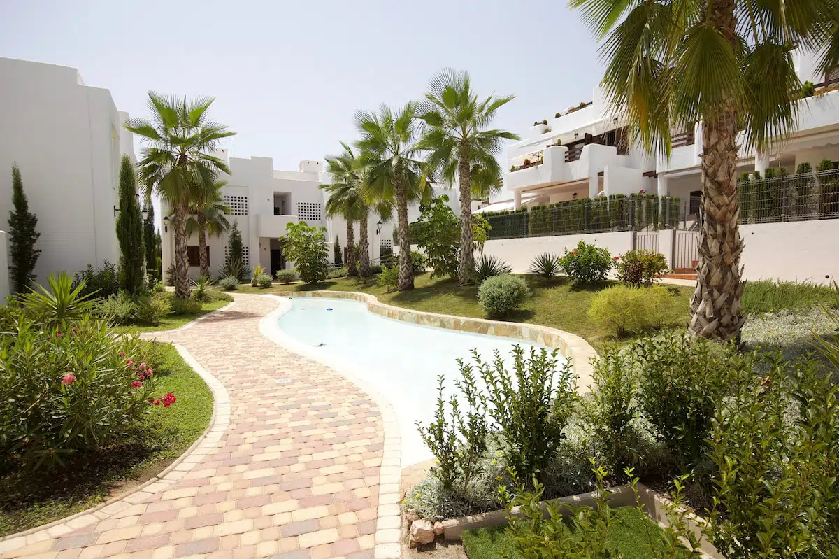 Apartamento precioso y acogedor con piscina comunitaria en San Juan de los Terreros, Andalucía, España para 6 personas. El apartamento de vacaciones está situado en un complejo turístico con bar y restaurante, en una zona de playa, rural, forestal, urbana y montañosa, cerca de tiendas, supermercados y una pista de tenis y a 50 m de la playa.